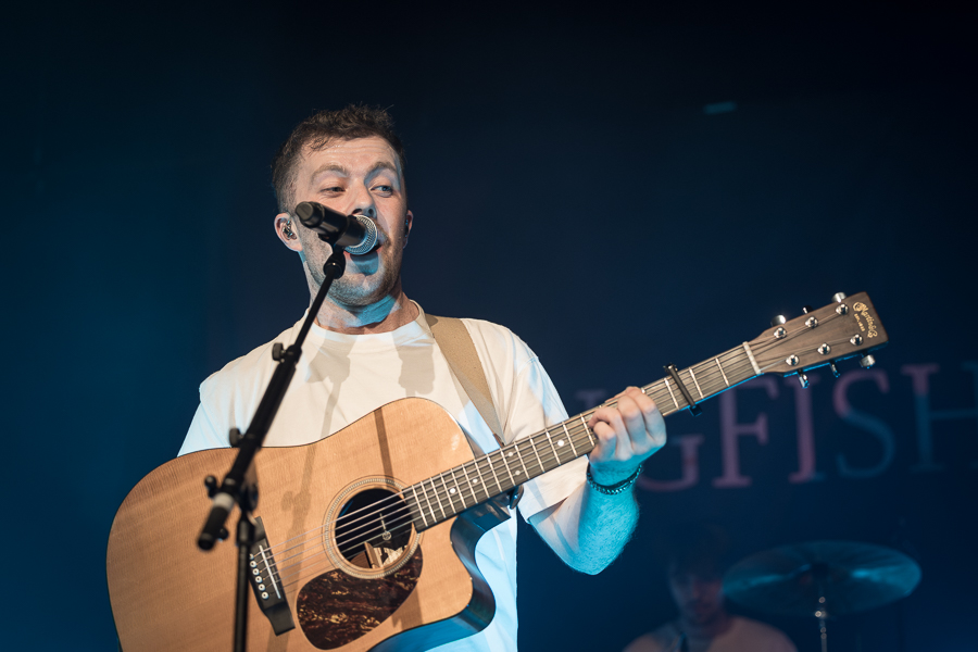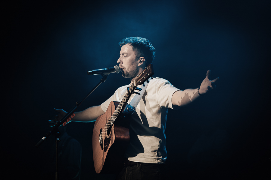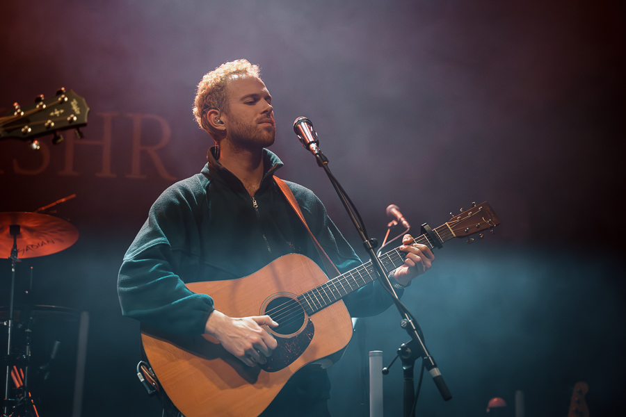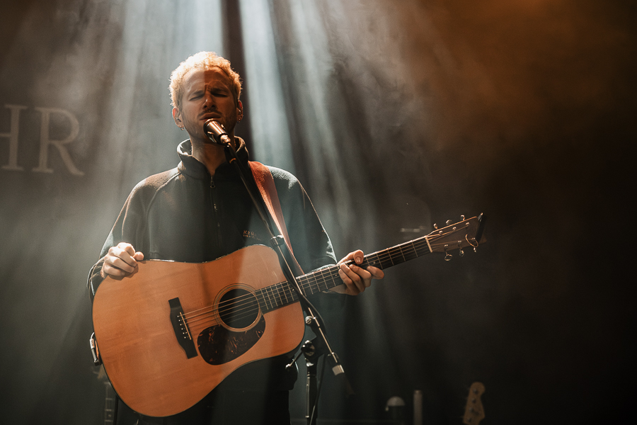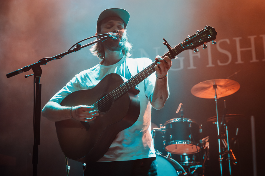For the next 30 minutes, JACK CULLEN presents songs from his own pen, mainly from his current EP ‘Everything’. And the songs, performed only on acoustic guitars, go down very well with the audience. From the very first track, the thoroughly likeable performance of the young Irishman is cheered on. The audience-friendly musician shows his gratitude and mentions several times that the tour as support for KINGFISHR is a wonderful time for him and his mate. The chemistry between the two acts seems to be just right.