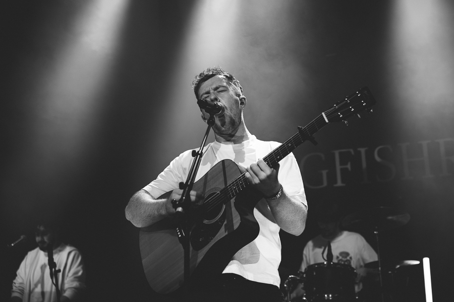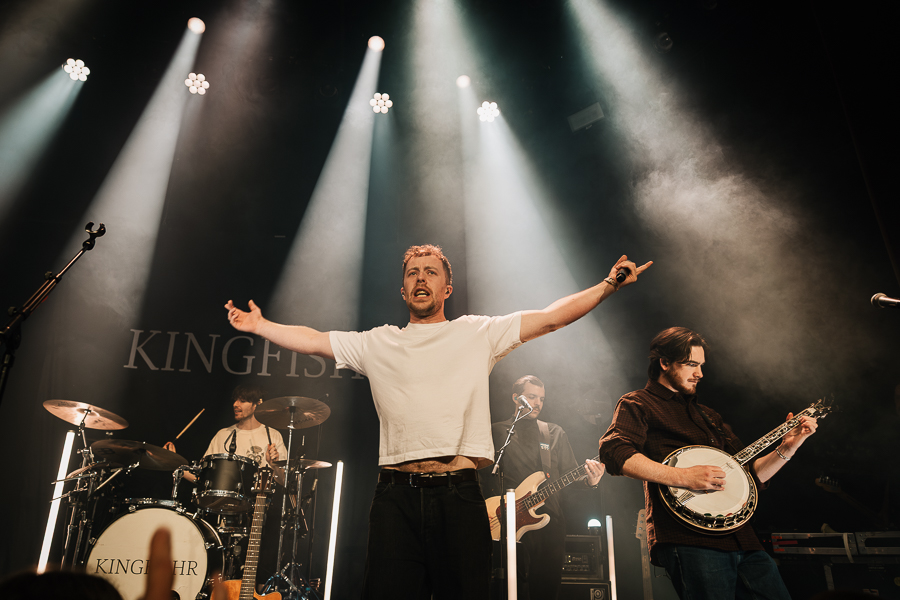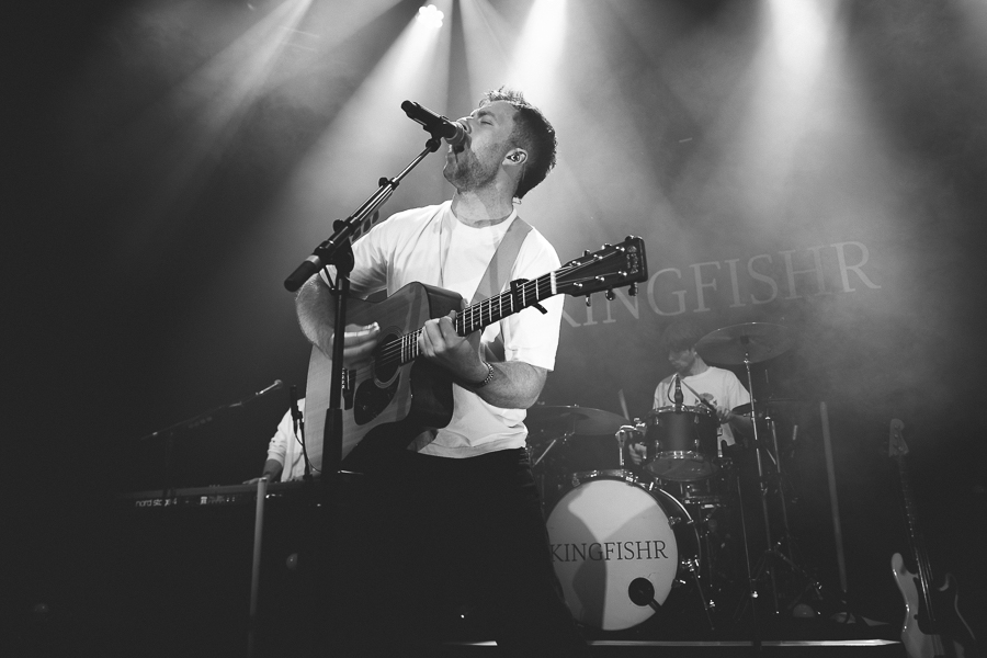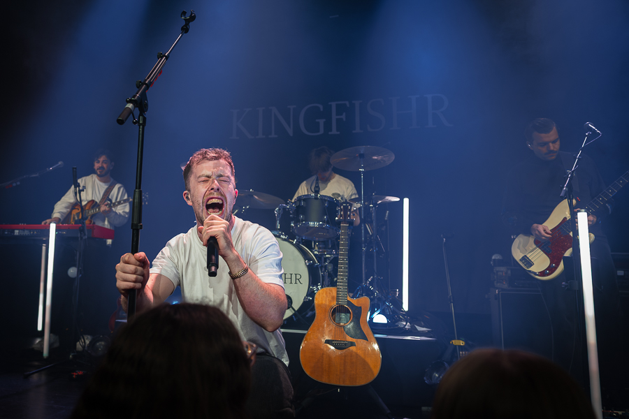 The Irish band gets off to an extremely dynamic start with ‘I Cried, I Wept’. Singer Eddie Keogh can be found all over the stage, striding incessantly from left to right and back again, only coming to rest when KINGFISHR performs ‘Shadow’, the second song, which is more mid-tempo. During the evening, the young band obviously performs most of the songs from their debut album ‘Halcyon’. That goes without saying, as it’s their only album at the moment.