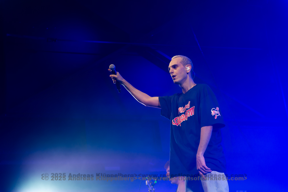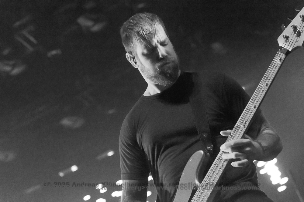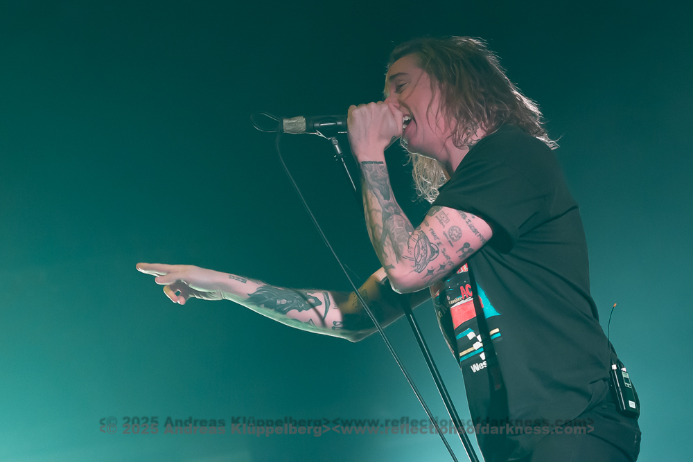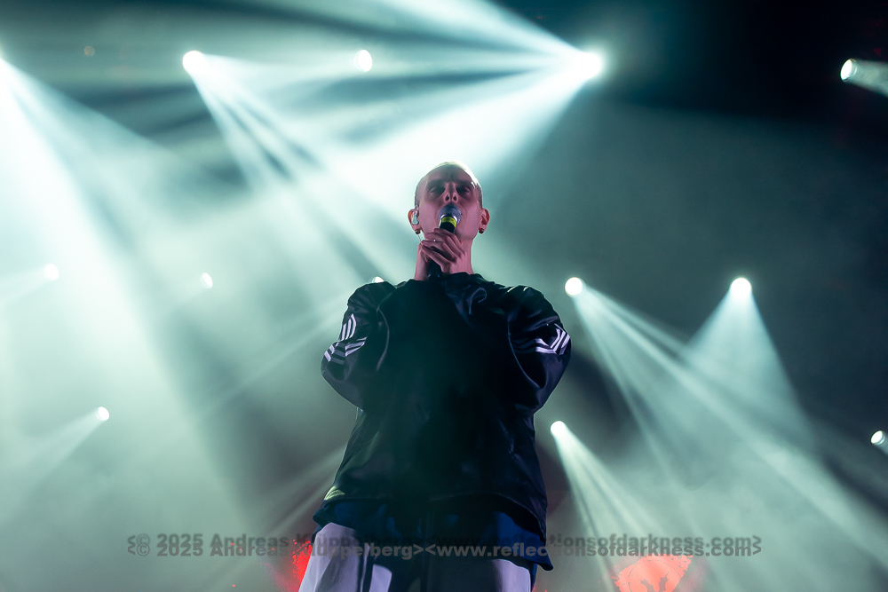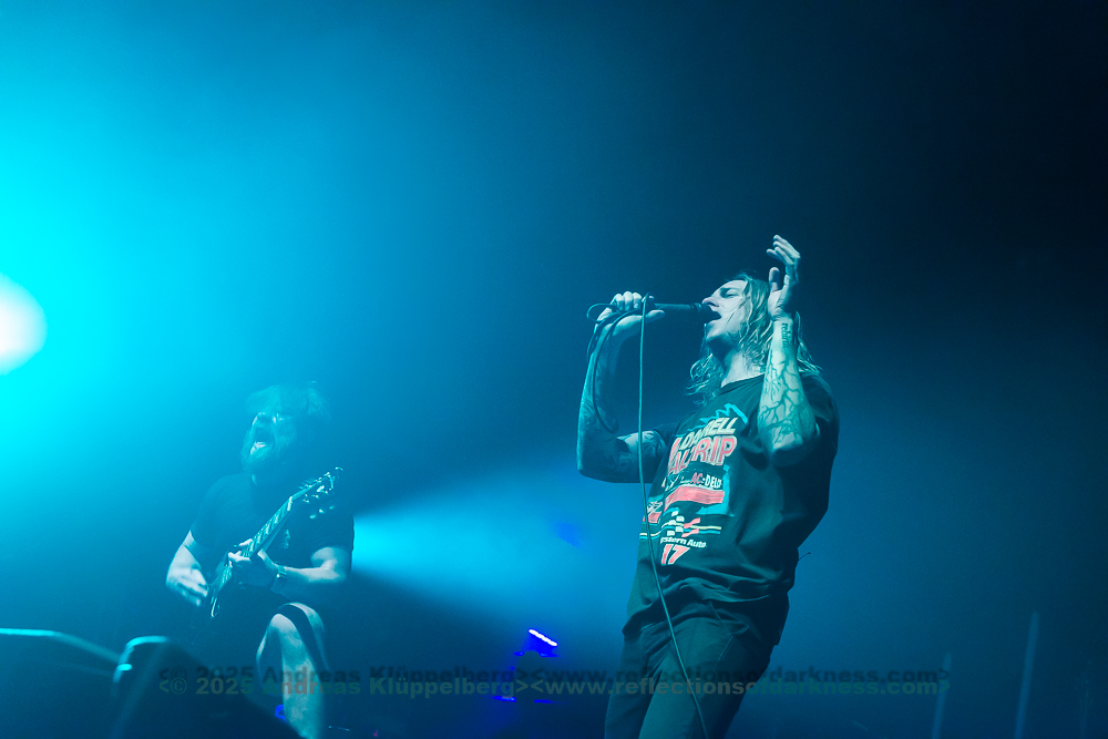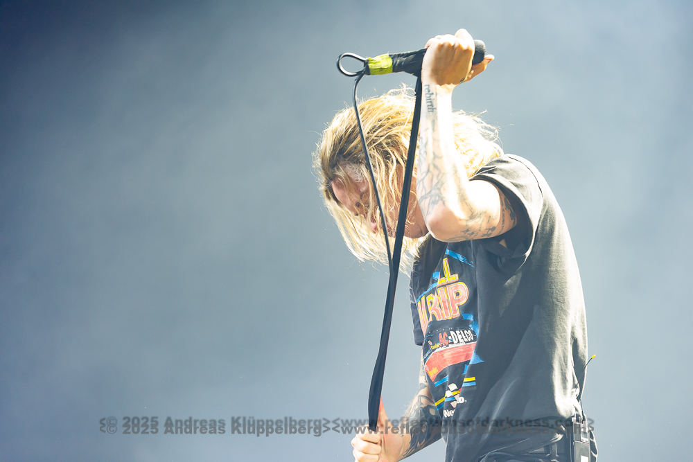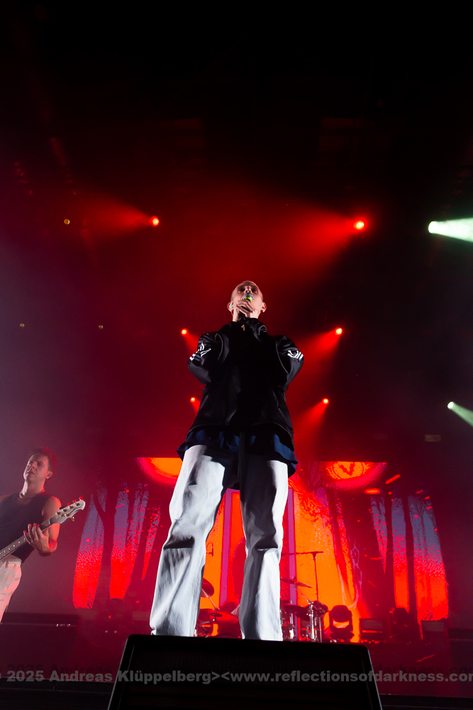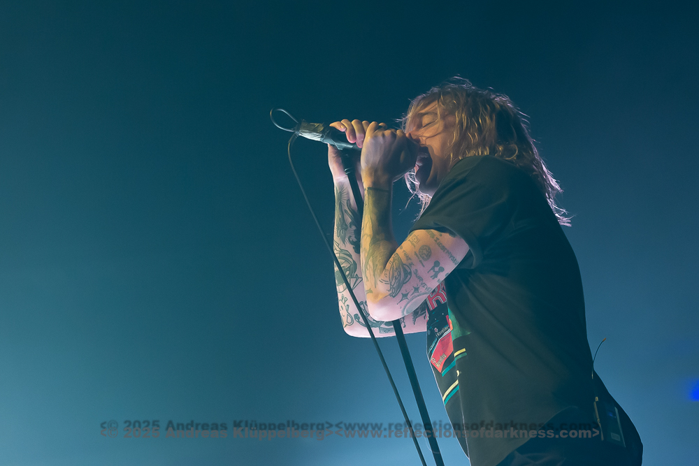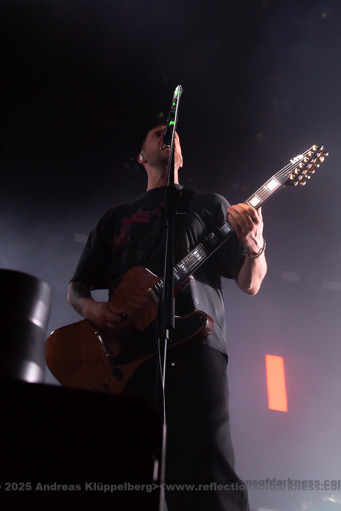 Super early at around 6pm, the band took the stage and started off with ‘Fade’, a single track from 2024. On stage, besides a ton of amps and cabinets, the band placed also two old-school tv’s, showing a lot of white noise, bizarre projections, and so lyrics fragments, which gave off a ‘Stranger Things’ vibe. In terms of their music, their screamo-oriented version of heavy music left quite a good impression. However, the more complex rhythm-patterns and DEFTONES-like soundscapes, employed by the band in their songs made the music a bit less accessible to first-time listeners. This was probably the reason, why the crowd’s enthusiasm remained a little more subdued during their gig, which ended after 30 minutes.