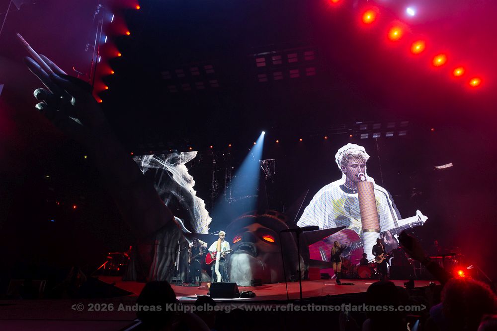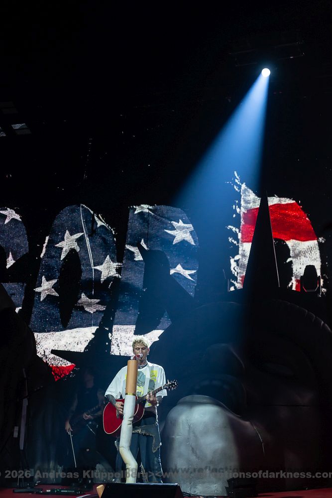 Cologne’s Lanxess Arena has hosted its fair share of spectacles but tonight felt like a collision of eras. The “Lost Americana” tour rolled into the cathedral city with a sense of high-stakes theatre, cementing MGK’s transition from a lightning rod of controversy to a multi-genre arena titan. The air was charged with anticipation by the predominantly female fans, a testament to an artist who has spent the last decade refusing to stay in one lane.