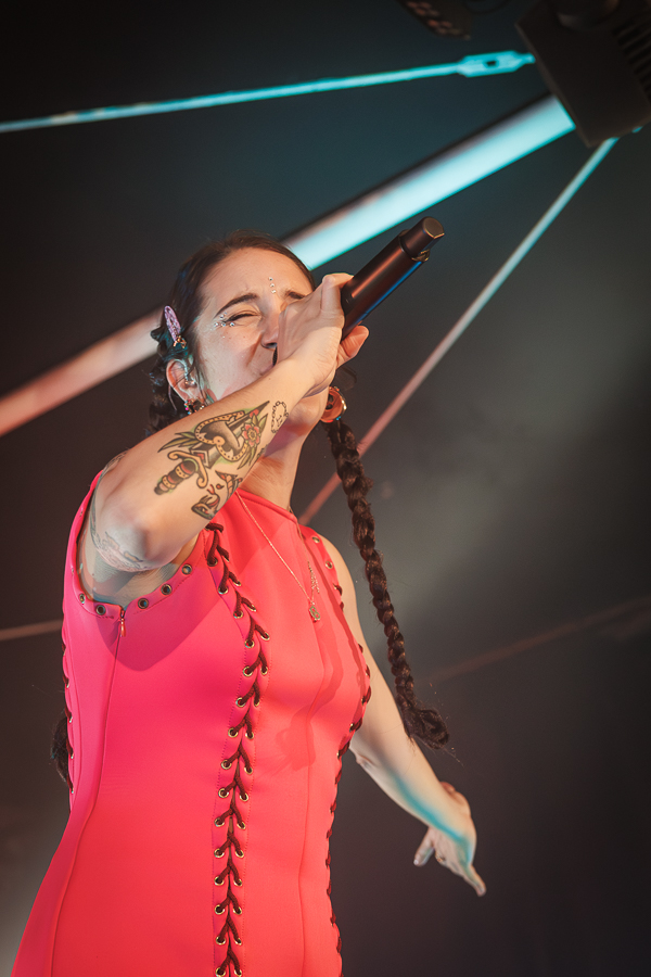 Accompanied by strobe lightning, and the introductory, electronic chords of the opener ‘All For Nothing’, singer Camille took to the stage first, and once a light beam illuminated her in her beautiful red dress together with her crystal clear vocals, it became a goosebump-inducing moment that never ceased to stop.