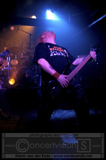 Jungle Rot starts very well. Many people are interested in them and almost immediately after the first seconds, people enjoying listing. Even the Macabre fans which stayed in the darkest corner of the venue during the first two bands stands up to have a curiously look on them. Jungle Rot seems to interest people. With a very enthusiast drummer, the band sets a great show with music which makes me want to hear more. But then after many pretty good songs, the show is already over. Too bad, cause this is the first band during this evening which seems to interest the audience.