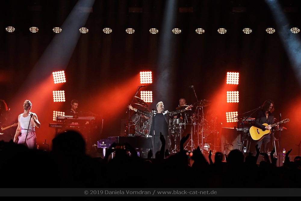 As expected, the concert was completely sold-out and when entering the hall you recognized that probably 90% of the audience were female and the male were probably forced by their girlfriends / wives to attend the show. When the band took the first steps onto stage, the whole hall was screaming and you thought there were thousands of teens in the venue instead of grown-up ladies. You felt like in the nineties when the band celebrated their hugest success. The following show had anything you expect from a boy-band show: smash hits to sing along, acoustic ballads to warm the hearts, dance choreographies causing loud screams within the female audience, confetti and a band in top form, especially vocally. Just the light show could have been a bit more colourful and there was not the stage show I expected and there were also no screens in the background or dancer you saw on videos from the British shows. Instead, the light show was held in blue-pink-red with white highlights from the front, setting the main actors of evening - Gary Barlow, Mark Owen and Howard Donald - into the right light.