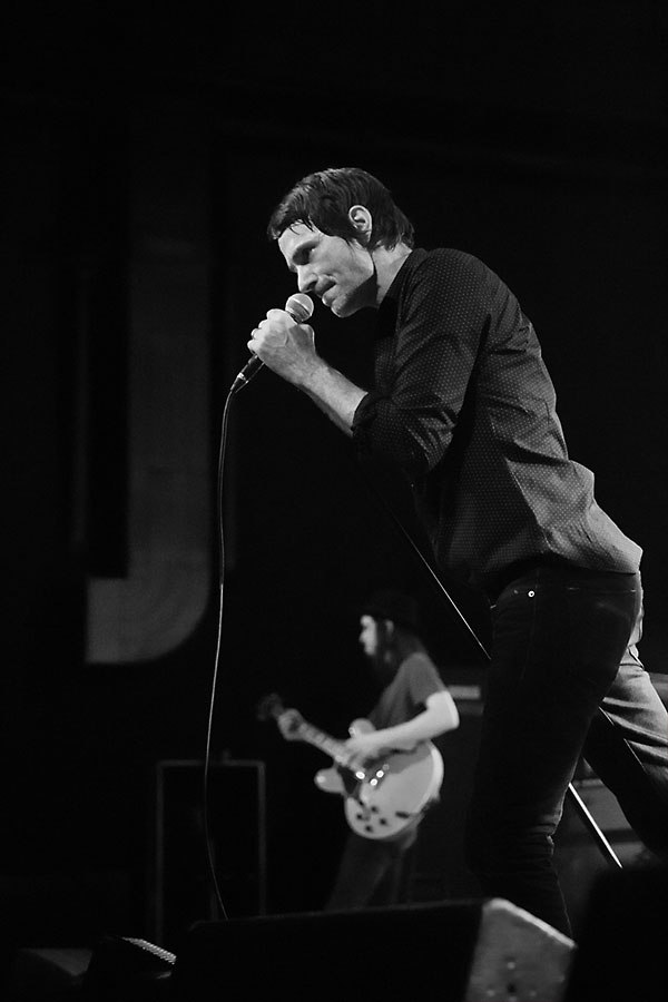 Singer Jeff Angell, together with his five band mates, announced that they were here to warm up for the STONE TEMPLE PILOTS, as “we figured you might be a little cold”, which earned them a few exhausted cheers. In terms of music, WALKING PAPERS delivered an interesting, multi-faceted set, which profited from the additional instruments (keyboard and saxophone, that is). Their version of Blues Rock evoked a dusty, desert-like feel. Jeff did his best to spice up the comatose audience by performing arty tricks with his mic stand and swinging his mic on its cord in huge circles, even while he took a walk through the audience area in front of the stage. However, the reaction from the audience remained mute, as the heat inside the hall prevented most people from moving too much.