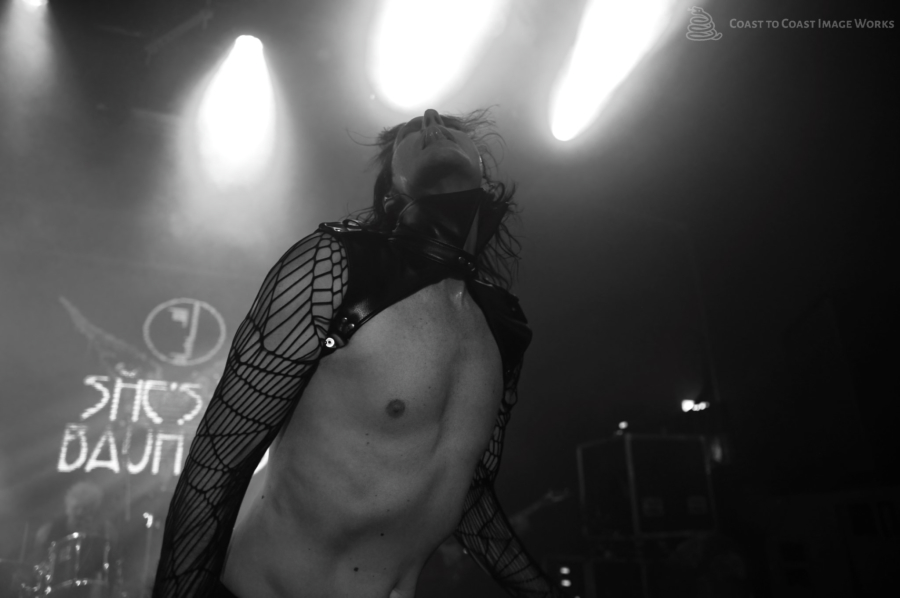 SHE’S IN BAUHAUS arrived on stage to PETER MURPHY’s solo single ‘Strange Kind of Love’, which led into ‘Bela Lugosi’s Dead’. Right, before I go further, I need to explain something. Jack Atlantis was on stage. Yes, he was there, but all I saw was Peter Murphy. It wasn’t just the outfit, including a very typical short black cape and bare chest, it was an unquestionable aura of Peter. I’ve seen BAUHAUS play several times. Tonight, I was watching Peter Murphy. How? I’m not sure. The illusion is unfathomable. I fully understand, believe and totally respect the BAUHAUS band members that have said they questioned their senses whilst watching SHE’S IN BAUHAUS live on stage. The BAUHAUS band members were mesmerised and slightly confused after seeing them perform, we normally see Peter from behind on stage.