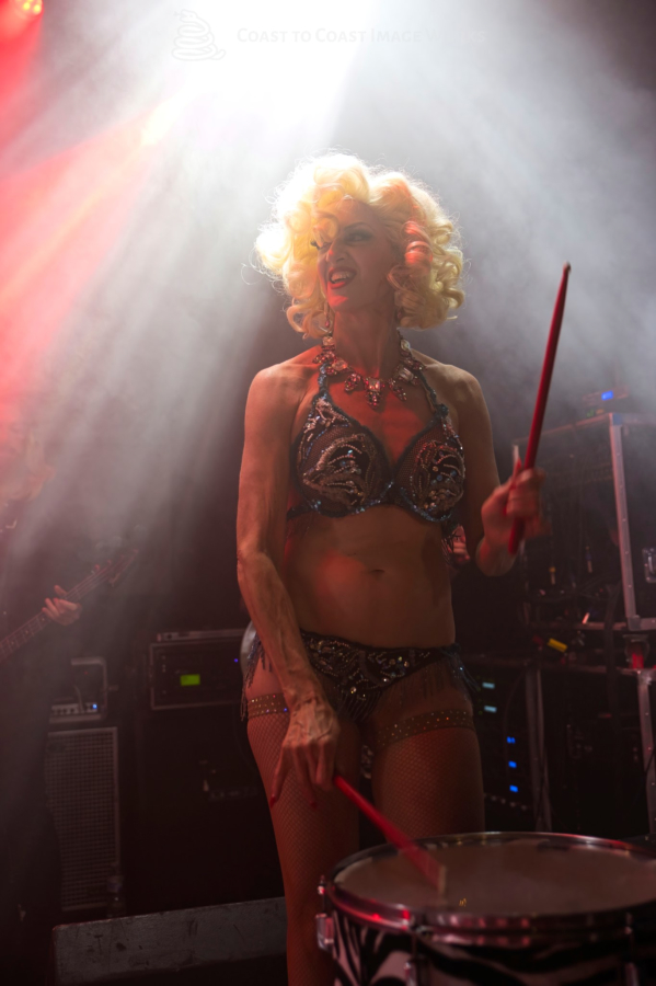 The band were equal in their persona swaps, not just in appearance, but in playing style too. The more I watched this ghost of Lux Interior the finer details of his character I saw. Facial expressions, movements, stage character - wow! TEENAGE WAREWOLVES blast through a huge set, like the SHE’S IN BAUHAUS set, all the tracks you want to hear. This is extreme as performers; through the evening of high energy, they get through nearly thirty classic BAUHAUS and THE CRAMPS tracks. How do they do it? Must be Red Bull. Burlesque is of course featured throughout this set, with KITTEN DE VILLE and Moana integrating seamlessly into the theatre like performance. Don’t forget Kitten featured in the video to THE CRAMPS ‘Ultra Twist’ video - she is completely and utterly at home here. It’s suggestive, highly charged sexy fun - with two girls that perhaps you wouldn’t want to take home to meet mother.