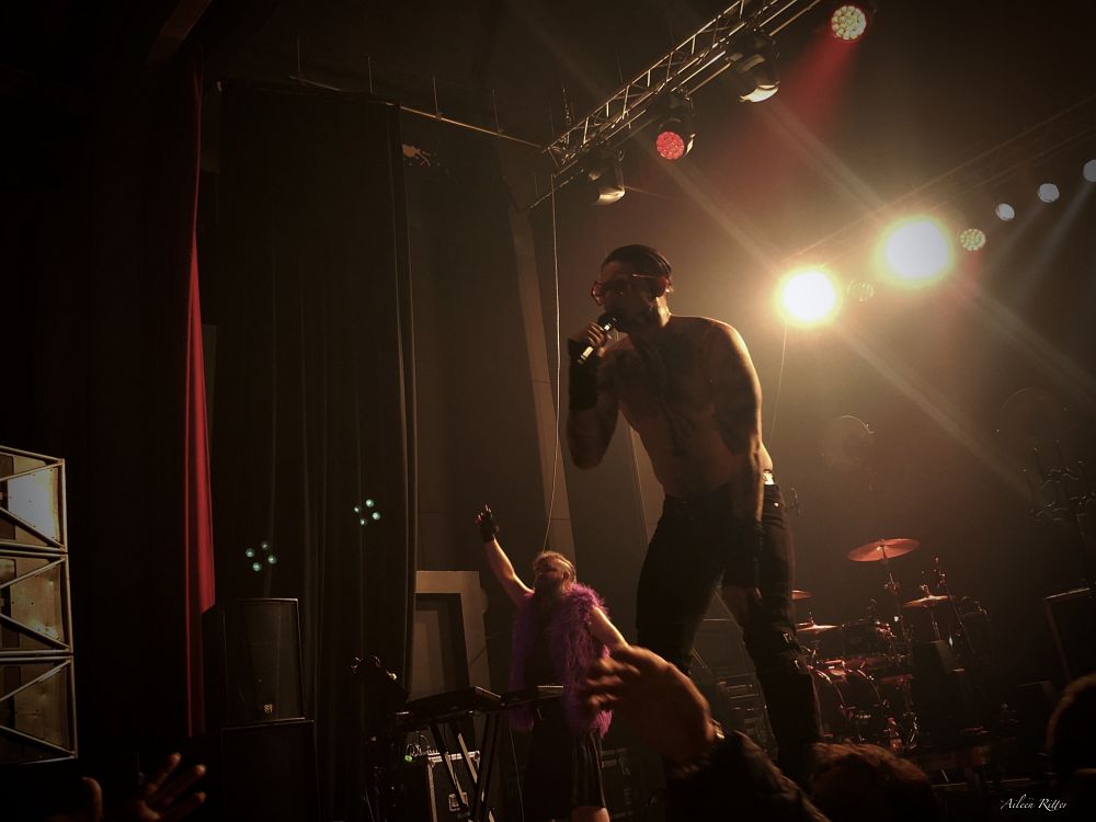 The French Electro Industrial Metal band CHEMICAL SWEET KID debuted in 2011 with their album ‘Tears of Pain’. They made themselves known to a wider public especially in 2019 while touring with AESTHETIC PERFECTION. In 2019 they also released their 5th and recent album ‘Fear never dies’ and afterwards a line of singles including the collaborations ‘Lockdown’ (with AESTETIC PERFECTION) and ‘I Hate Myself The Most’ feat. Chris Harms (LORD OF THE LOST). During the tour with PROJECT PITCHFORK the three very sympathetic musicians were able to significantly expand their fan base and played their way into the hearts and minds of many PROJECT PITCHFORK fans. Master mind Julien Kidam is working on new material for the next album, what is planned to be released sometime next year. On their Face Book page, the band announced a surprise for the last three shows of the tour. And so, tonight, we get a little preview, that makes me definitely curious about what comes next. But to that later. www.chemicalsweetkid.com / www.facebook.com/chemicalsweetkid