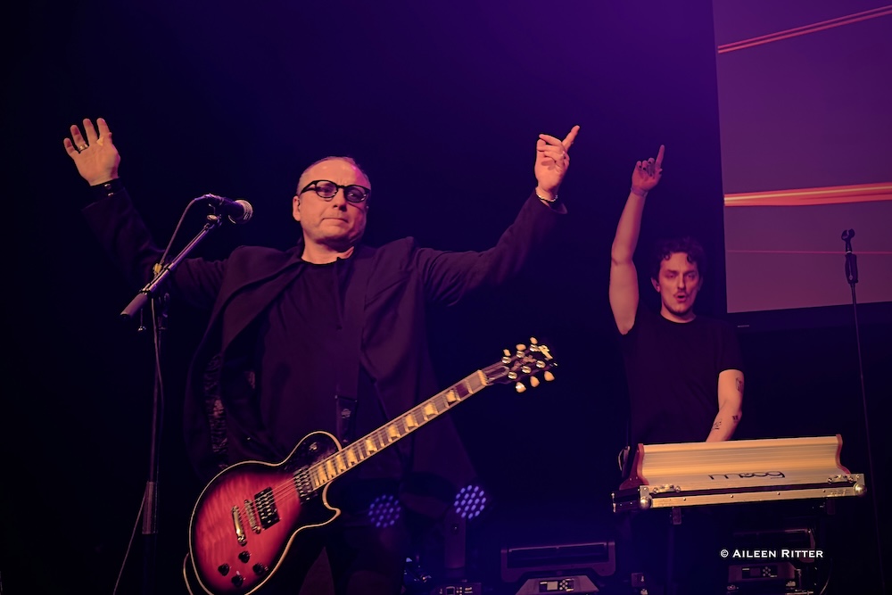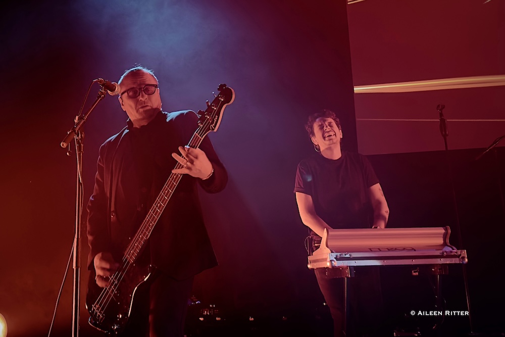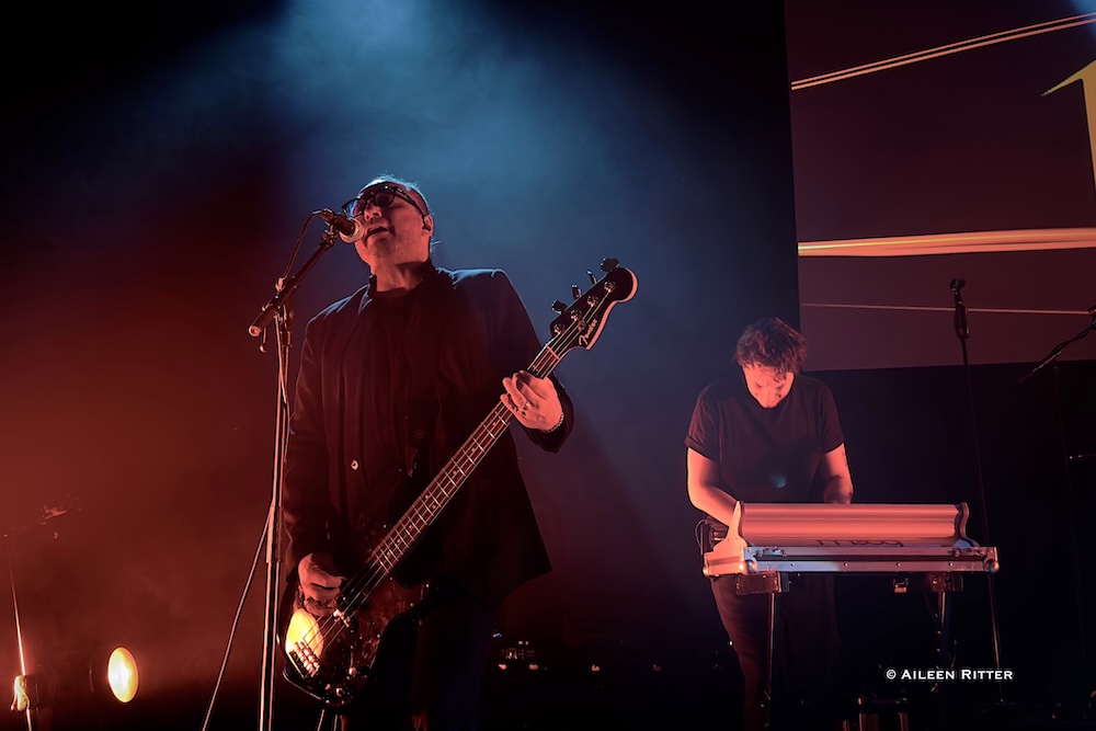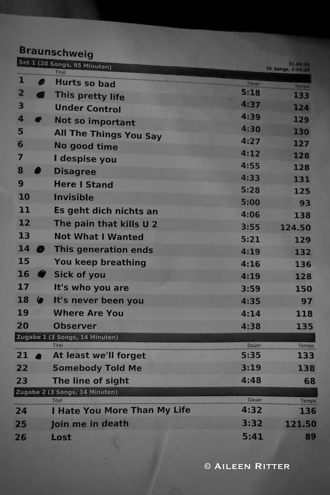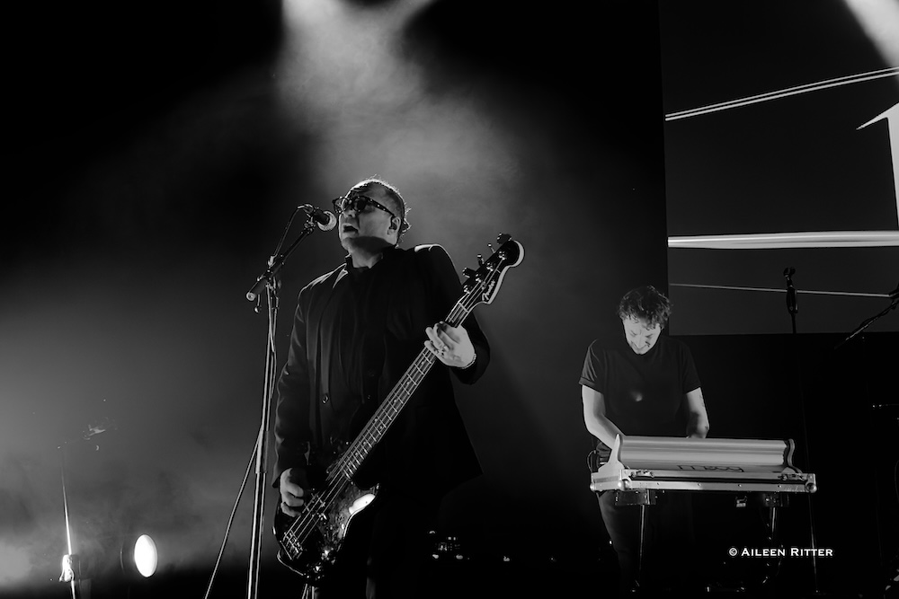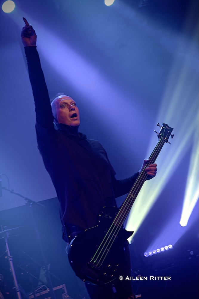 Only by logging off and becoming invisible, you may regain control over your own life. Sven introduced the next track with the question: “Can you manage some more?” This song stood out in every way in the setlist: sung in German with a deliberately aggressive performance, it made the recipient unmistakably understand that they should mind their own business. It was refreshing to see the usually friendly and accommodating Sven adopt this rare, assertive role, as sometimes, everyone’s patience snaps, and thoughts are allowed to run free. Visuals included creepy horror faces, barbed wire, fences, and ghostly figures. ‘Es geht Dich nichts an’ ended with a short but intense drum play by Jeans, and the audience celebrated the band with cheers, whistles, and loud applause.