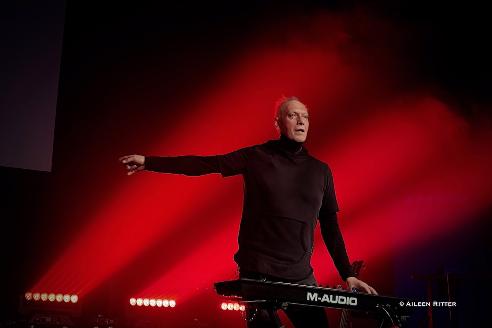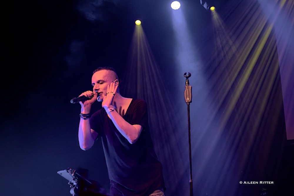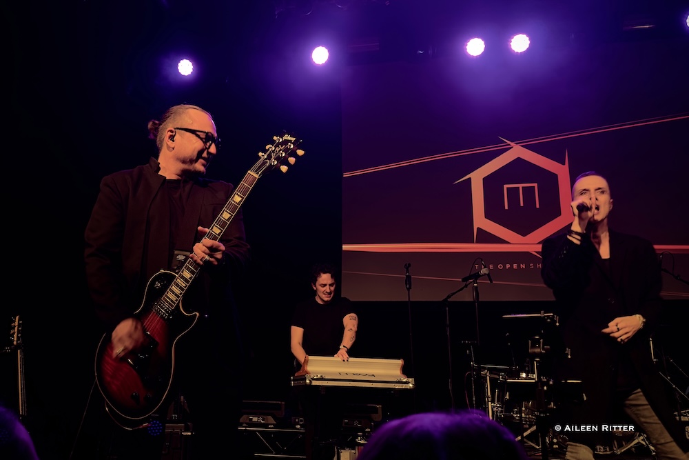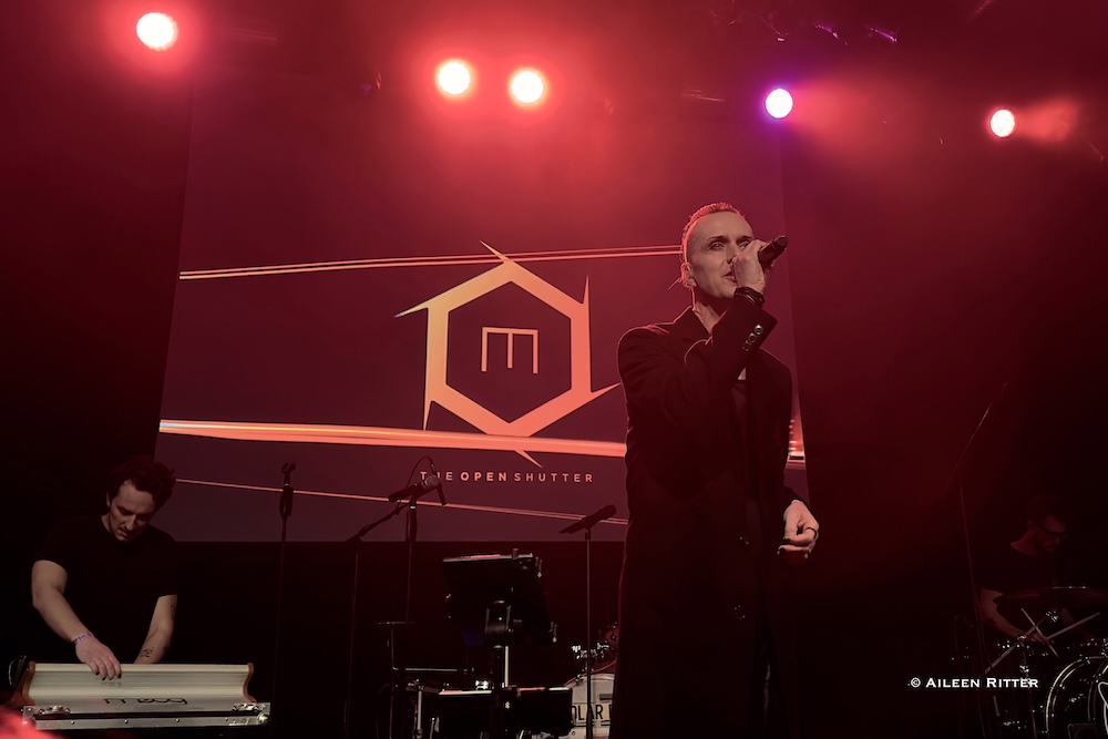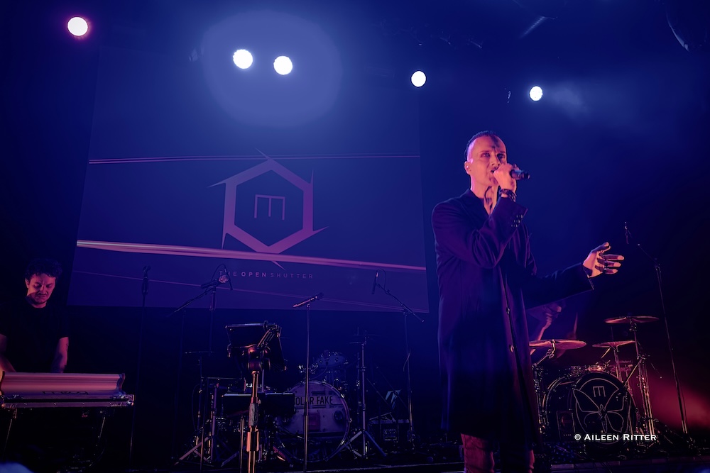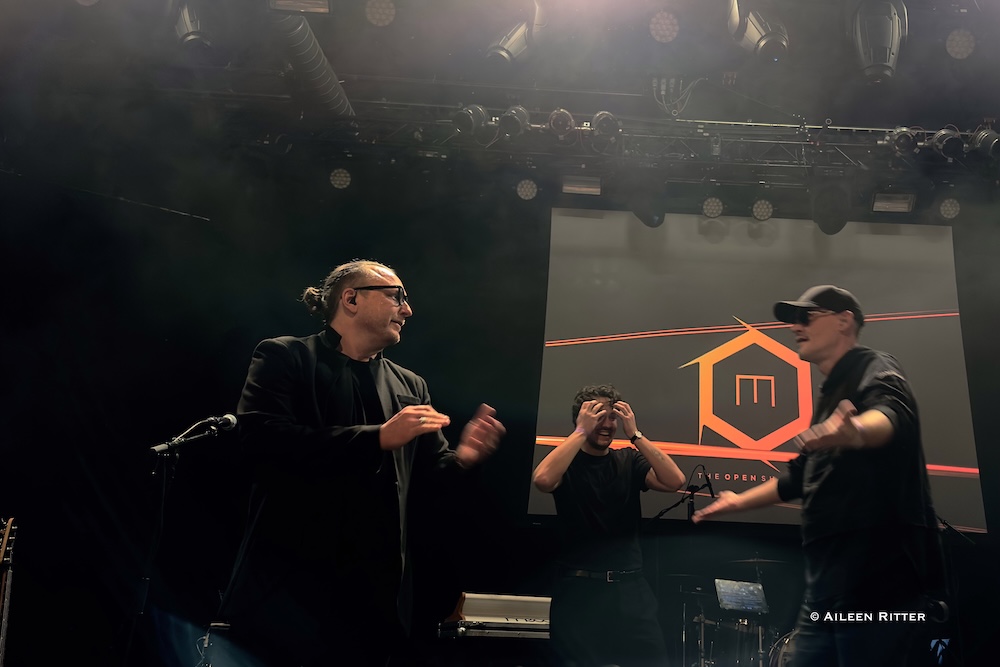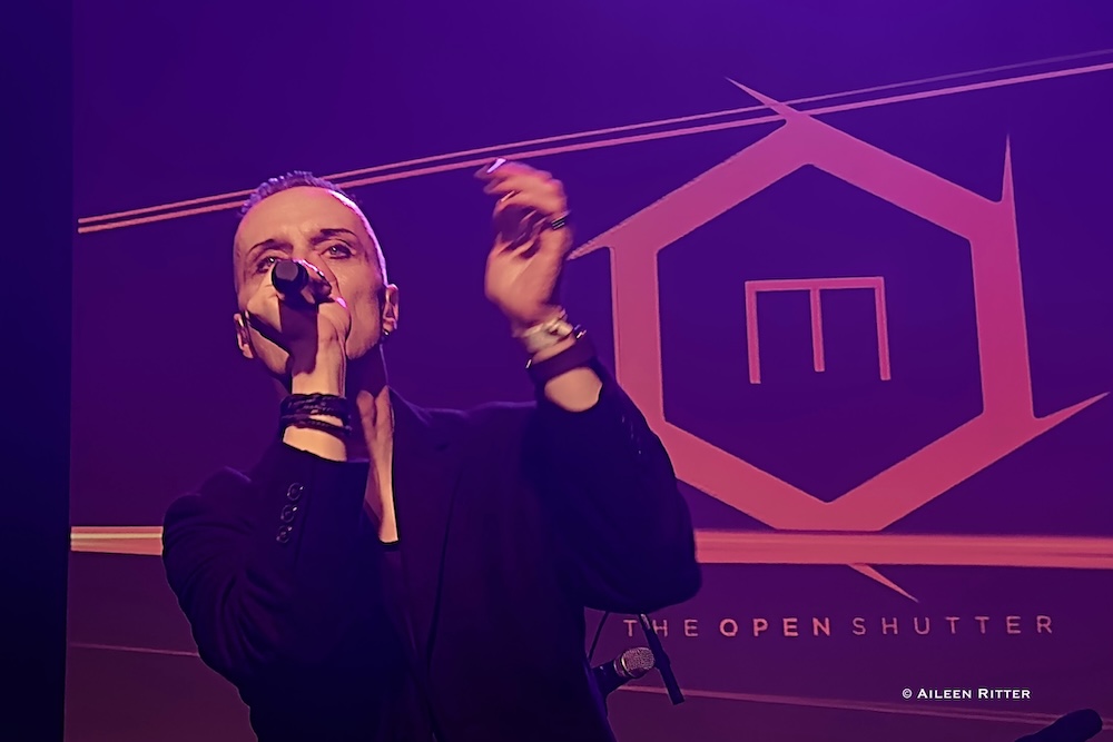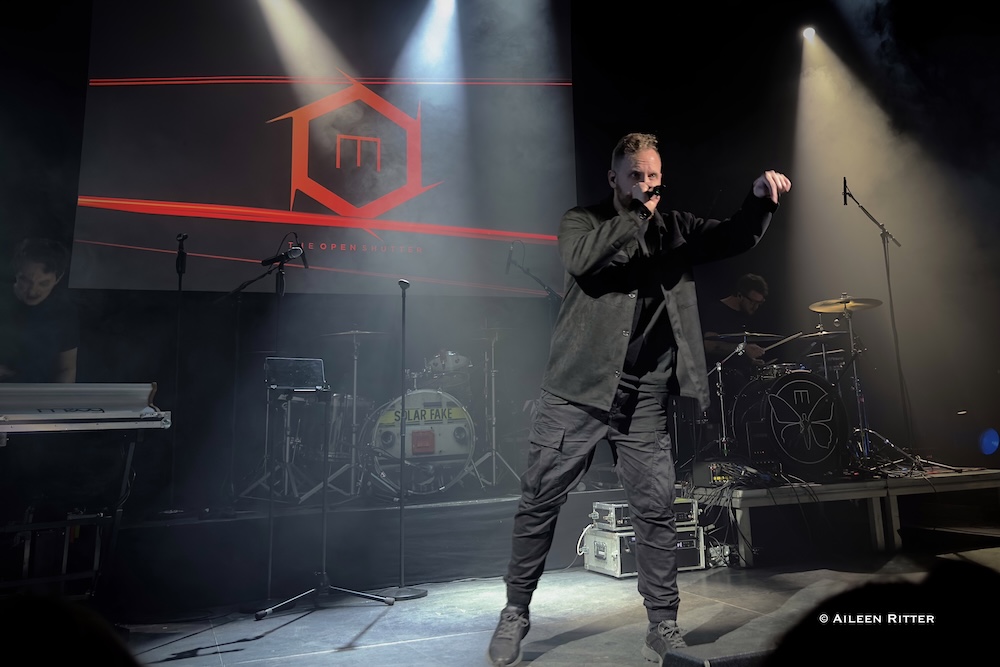 Tonight’s event, announced to begin at 8:00 p.m., started right on time. At precisely that hour, the first notes of the opener ‘Open Shutter’ sounded through the room. Due to Lennart’s absence, this time the song was performed by Andreas alongside Arc Morten at the microphones. As already in Halle, the striking red cover of ‘The Inexplicable Darkness Of Light’ album adorned the backdrop of the stage. Now the lighting technology began to move, breathing a first delicate life into the dark stage in purple.