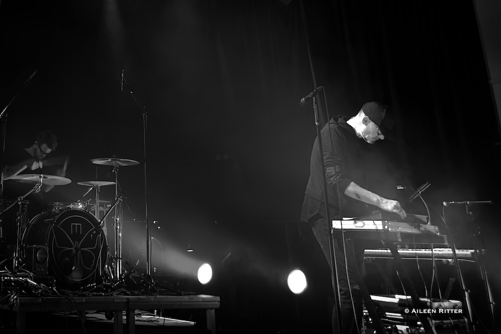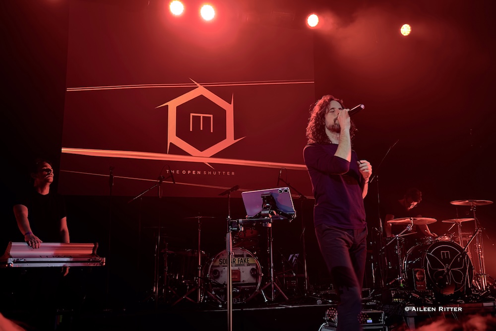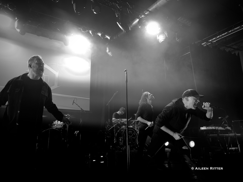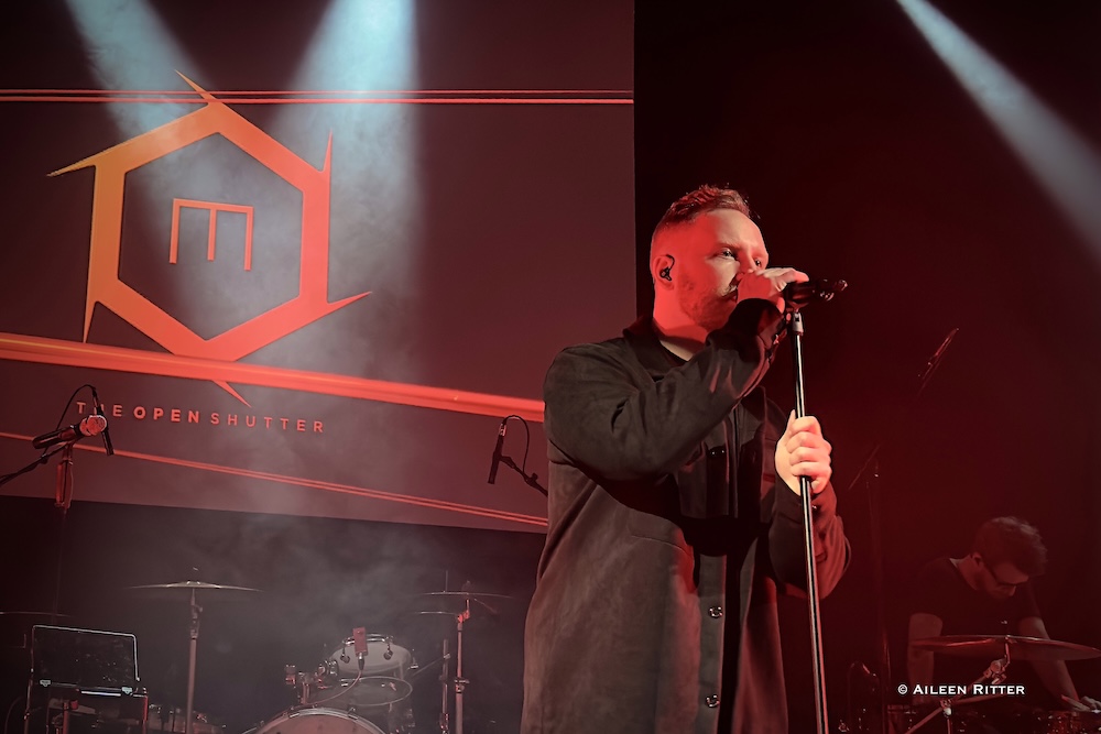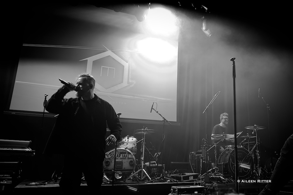 Max appeared on stage, followed by Marius making his way to the drums. Arc Morten was next, this time sporting a subtle gangster style with a long hoodie, baseball cap, and sunglasses, which perhaps is connected to the four letters MNÆ he recently added to his social media accounts. Finally, Christoph entered the stage, who greeted the audience with a raised hand, prompting the first cheers from the crowd. Arc Morten was already moving to the rhythm at his microphone before effortlessly slipping into the opening lyrics. Knowing what he is otherwise capable of doing with his voice, this first part of ‘Open Shutter’ sounded almost innocent, almost angelic.