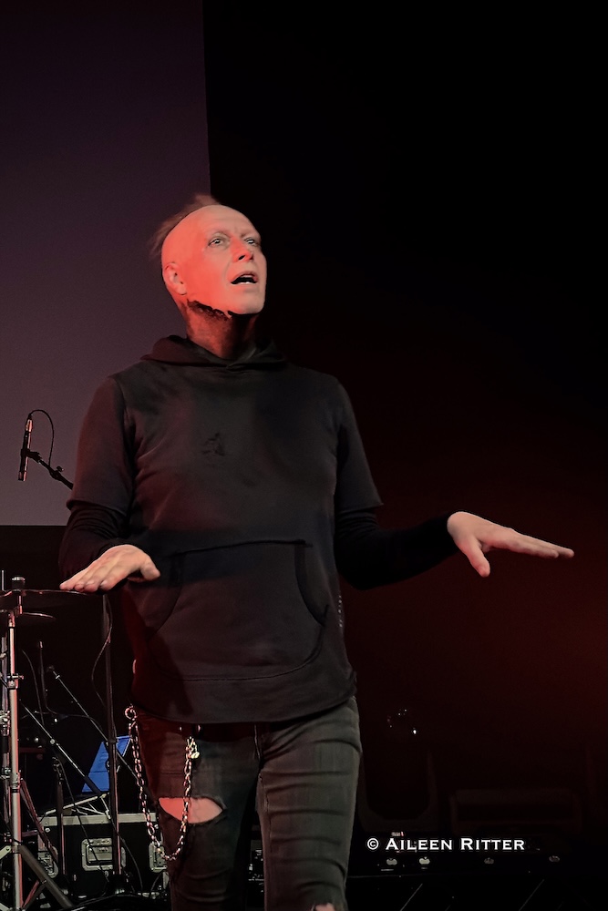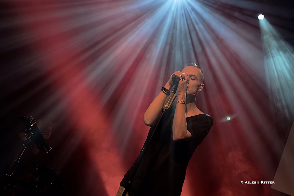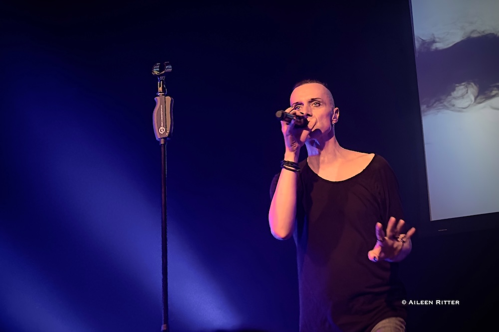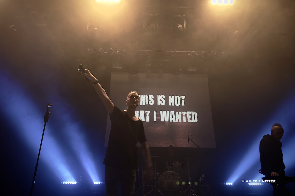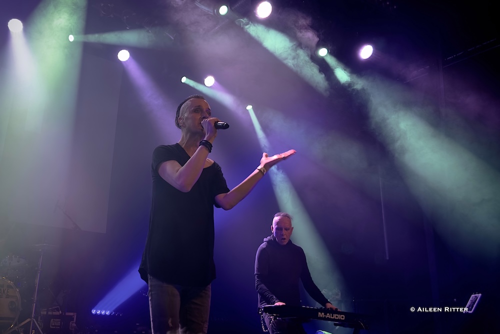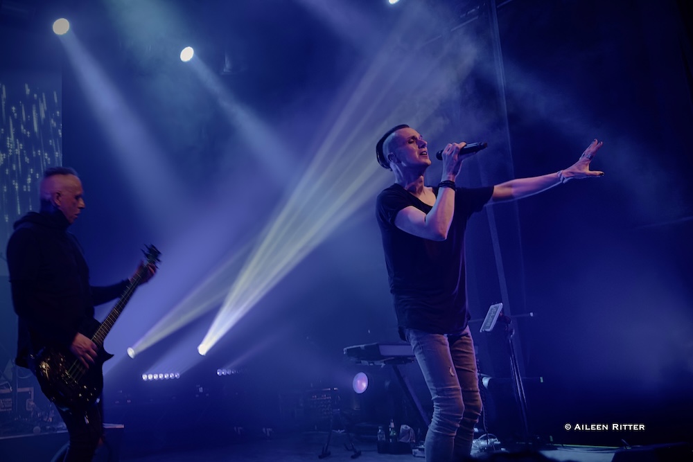 Christian performed the song with a mix of yearning and power. He clapped, the audience clapped, he leapt into the air, the crowd danced, and it all built into an energetic finale with pounding beats and an exuberantly applauding audience. “Thank you. Many thanks!” Slightly out of breath, Christian immediately launched into his third and final number: ‘Moveout’ echoed through the room and was just waiting to be filled with performance. That was a piece of cake for the FORCED-TO-MODE frontman, who not only delivered the lyrics penned by NEUROTICFISH’s Sascha Klein with confidence, but also swept across the stage with his usual boundless energy.
