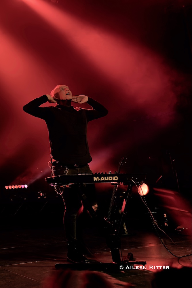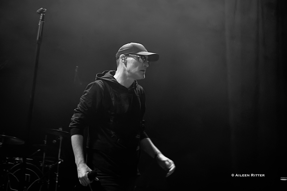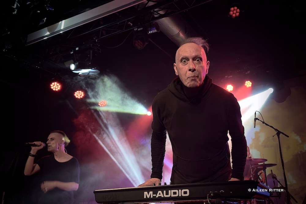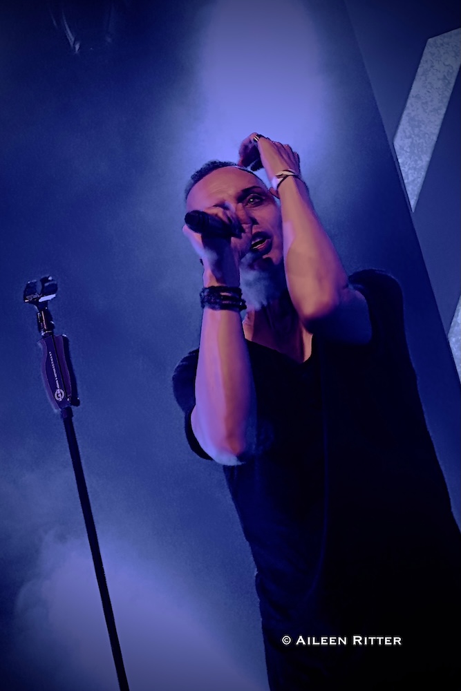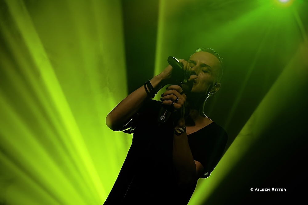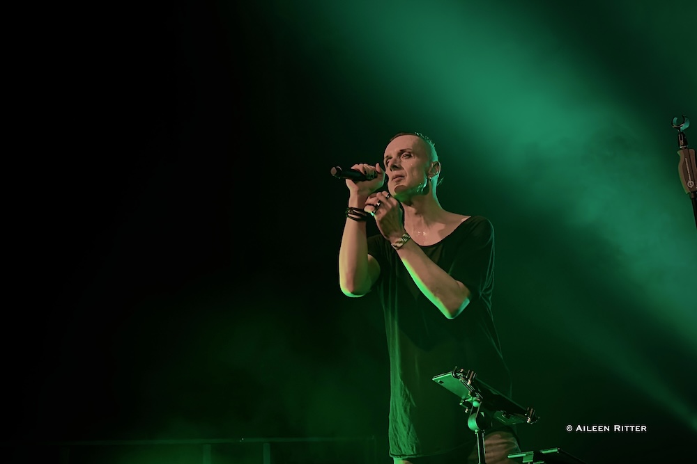 Christian performed the song with a mix of yearning and power. He clapped, the audience clapped, he leapt into the air, the crowd danced, and it all built into an energetic finale with pounding beats and an exuberantly applauding audience. “Thank you. Many thanks!” Slightly out of breath, Christian immediately launched into his third and final number: ‘Moveout’ echoed through the room and was just waiting to be filled with performance. That was a piece of cake for the FORCED-TO-MODE frontman, who not only delivered the lyrics penned by NEUROTICFISH’s Sascha Klein with confidence, but also swept across the stage with his usual boundless energy.