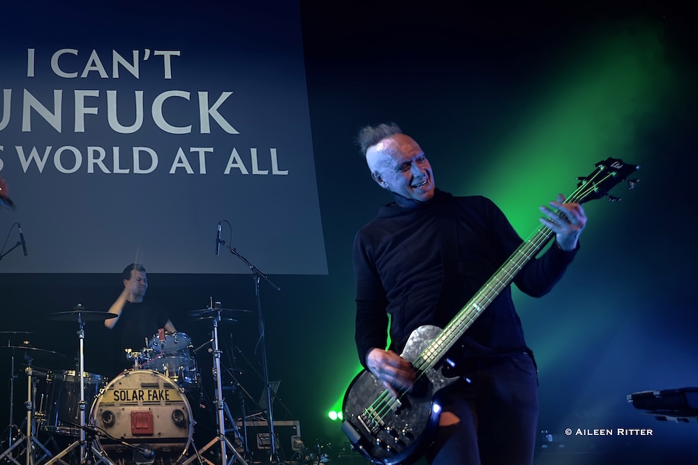 Before diving into the show: As being some kind of new to the of SOLAR FAKE fanbase, I asked myself what that band stands for? And is there a thematic thread running through their lyrics? While the music can be sweet and uplifting, the lyrics are often bitter and sharp. Sven openly admits that he has long since lost faith in what humans are doing to this planet, and he consistently addresses society’s shortcomings in his songs. In a striking example of turning words into action, SOLAR FAKE once included a small packet of organic seeds for a bee meadow in a limited fan box, accompanied by the message “Unf*ck this world“.