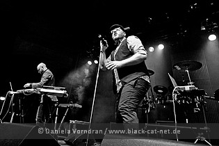 The new songs 'Resolution' and the robotic club stomper 'Control' finished the main set before VNV NATION returned for an opulent encore, opened up by 'The Farthest Star' from the 2007 long-player 'Judgement'. 'Legion' from the 'Empires' followed, a song I haven't heard live in ages and especially not in its album version and not the long version with the orchestral some may know from VNV NATION's live DVD. With 'Nova', an epic song with a very long build-up, one of the most touching moments of the show was next, before the traditional sing-along-song 'Perpetual' finished the encore. But the audience was still hungry, and so was the band! Hence the band performed 'Resolution' a second time as an unplanned special encore before the sweaty and happy fans had to leave the venue. Ronan Harris, drummer Mark Jackson and their two live collaborators Tom Lesczenski and Andre Winter surely know how to put on a great show and how to engage an audience, so there are good reasons to look forward to the European festival which bill VNV NATION this summer!