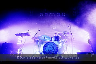 I must admit that I had never heard of the band before and even their song ‘Peaches’ was unknown to me. And I must say I really missed something. IN THE VALLEY BELOW mage a very good impression to me. The calm and gloomy tunes where male and female chant were perfectly merging together and the mix of dreamy electronica, pop and indie caused goose bumps. Having only one album released so far, the band presented six songs out of this album, six songs that fitted perfectly to the style WHITE LIES would present later. Especially the drum lines were quite similar. Also the lyrics are worth to be mentioned. They create a world of psychedelic lyric, vague thoughts and dark romantic making you dream, feel and let go. Very well fitting to these dark romantics was also the old time aesthetic of the band’s clothes with suspender, button-downs, and boots and the lady wearing a long white floral dress. To say at last, anything was melting together… sounds, lyrics, vocals and the visual appearance. Really good!
