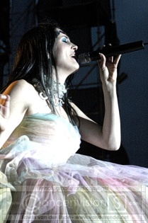 On televisions this evening was announced as the concert of the year and expectations were high. Their own special island, their own little festival, what more did they have in store for us this evening? It seemed the entire day was leading up to this final performance and not just this day but the entire career of Within Temptation. Elements of their whole career were part of the show. Within Temptation always has a decorated stage as did they today. The entire stage was white and had many different heights on which for instance cages were placed, their usual angels and several instruments such as Stephens drums, Martijns keys and another set of drums which would prove their purpose later. All around Java Island boats lay in the water and many people were watching the show that way. When it got dark al the lights on the water were a great sight.