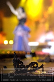 A great setlist, very extensive. Twenty songs were on the list for us tonight. The show started as it had for all those years since the release of ‘Mother Earth’ and before the release of ‘The Silent Force’, with ‘Deceiver of Fools’ which has a wonderful tension in its intro. Then 2 familiars of ‘The Silent Force’ were played which were succeeded by the first surprise of the evening, it was the first time they performed ‘Fear of the Dark’ live, to great pleasure of the audience. After ‘Angels’ three monks entered the stage to come and play the drum set I had been wondering about. It was a great intro to the next song, very powerful. Heavy songs were alternated by a break with two sweet and soft songs, ‘Somewhere’ and ‘Memories’. Robert announced that this concert was not just a finale to a great year but also to a great career so far. They started out different, with other band members and they had brought them along for a trip down memory lane with ‘Candles’, ‘Enter’ and ‘The Other Half’. With George from Orphanage to reinforce them they performed these golden oldies causing many in the audience to frown because they did not recognise these songs. These are form their first albums ‘The Dance’ and ‘Enter’ which are unknown to many recent fans. But for those who had been following them a bit longer this was a great moment in the show. But then after 19 songs it was time for the grand finale with, how could it be anything else: ‘Ice Queen’. At points during the show Sharon sounded insecure, which is not necessary for she is a great singer. The sound was good although I might add; the arrangements of all songs are softer these days which I find to be a great pity.