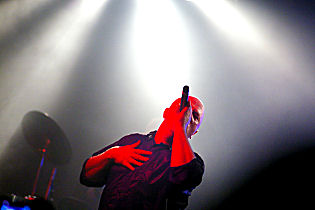 Hot, hotter, the hottest - that would be an appropriate description of the cosy club shortly before VNV NATION should enter the stage. While I was recollecting some strength after the exhausting gig of ROTERSAND, I took a look around the hall and noticed a lot of smiling faces obviously looking forward to what would follow. Finally, the lights went off and a LED screen displayed the glimmering words “faith”, “power”, “glory” and “VNV”; a nice effect that perfectly accompanied the impressive and pompous intro `Pro Victoria´ which marked the band members´ march-in. When front man Ronan Harris appeared on stage and moved from one side to the other one, the crowd was going wild and frenetically celebrated the second piece `Tomorrow never comes´. The fans sang along the powerful anthem which was followed up by a warm welcome to the audience.
