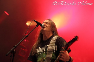 After the modern and at times very melodic show of DEADLOCK, GRAND MAGUS continued in a more traditional way, and their mixture of Heavy and Doom Metal worked very well on the audience, although obviously not as much action could be seen as during other shows. GRAND MAGUS do not need a lot of speed or fast drums to convince, but the rather slow, sagging music created a good atmosphere, that offered unequalled opportunities. The band had a huge backdrop, a combination of the Swedish national flag and their own logo. Furthermore, the three musicians concentrated on playing their songs in a pretty flawless way.
