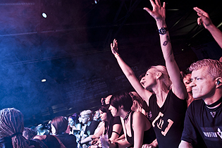 [:SITD:] replaced ROTERSAND that had to cancel, and surely played their role well. It is their 15th anniversary this year and so the band showed what they can do: a big crowd gathered in front of the stage and was not disappointed by the band’s performance. With songs like ‘Snuff Machinery’, ‘Herbsterwachen’ and ‘Rot’, the band probably played something for everybody that night. The Hall literally was shaking under the dancing of the fans. Basically, there is nothing negative to say about the bands performance except for the light but this was rather bad the whole night due to missing light from the front. All in all: it was a great show and everybody is already anxious about the upcoming anniversary concerts and the guests they will bring along
