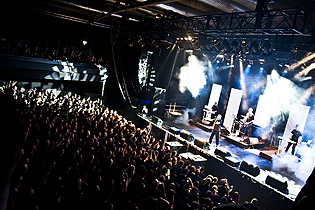 When thinking about FRONT LINE ASSEMBLY, I had some good thoughts in my mind and so, I was looking forward to the concert. However, as soon as the band started I was kind of disappointed. Sure, the sound was good, the songs were catchy and totally danceable but the voice could have easily been replaced by another electronically changed voice. In fact, I think a computer itself could have stood on stage and sung. This was really a shame because the music itself wasn’t that bad actually. However, the crowd loved it and the hall was filled with dancing people and screaming fans. I am sure that a lot of people really enjoyed this concert a lot but I think that a band whose singer could be replaced by any other guy who is able to use a computer isn’t really unique and somehow replaceable itself. Sorry, FRONT LINE ASSEMBLY, I expected more from you.