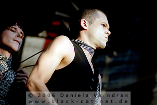 Like expected, the set was based on songs from the current album ‘Subkutan’. The opener ‘Subkutan’ and ‘The End’ presented a quite new development in ‘De/Vision’s’ sound: trance layers – not that innovative today anymore. Nevertheless the songs work and present nice Synth-pop. ‘I’m not enough’ from the album ‘6 feet underground’ presents the old charm of ‘De/Vision’ songs and reminds of ‘World without End’. Besides several songs out of the recent album the band presented also some of their greatest hits: ‘Your hands on my skin’, ‘Strange affection’ and ‘I regret’. Musically the band presented a solid show where also smaller sound problems did not really count.