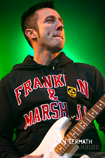 As the last band for today, DIE TOTEN ÄRZTE were entering the stage. As the name already says, this band will play some tributes to DIE TOTEN HOSEN and DIE ÄRZTE. The audience changed to young people, some punks were standing in the crowd. Generally, the whole place of the fish market was now totally filled with people. Of course, this cover band also was founded in Hamburg. For fifteen years, Jey Petersen, Branko Bock, Stephan Capser and Jan Ole Jönsson are touring through Germany to perform hits from two of the greatest German-speaking bands. DIE TOTEN ÄRZTE opened their show with a mix out of the two mentioned bands and then started right with ‘Paule Bademeister’ from DIE ÄRZTE and with DIE TOTEN HOSEN’s ‘Alex’, so the big ones right to beginning.