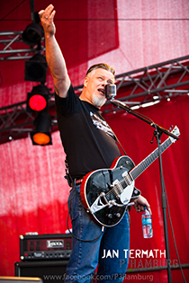 The taillight of the Hafen Rock was RESTLESS, the only one who did not even come from Germany, but from the UK. Also like the bands before, they play Rockabilly and are over 20 years in the business now. In their home land, they are applied to be a kind of legend. But sadly, the three guys of RESTLESS were only standing there on stage and played their songs down, without any special show effects or things like that. So we could not confirm any legend-status. The only eye catcher was the bass player, who had very specials technics to play his double bass, with a mix out of pluck and tap. With over 1.5 hours they had more time than the two headliners the day before, but there was much less show and much less crowd activity. For the last band and as completion of the Hafen Rock we wished for more power and more emotion, even because now the weather was perfect warm and sunny, not like the days before. www.myspace.com/doyoufeelrestless