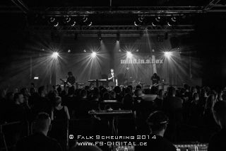 The duo from Sweden was opener of the evening. It is hard to find information about this band as neither their homepage nor their Facebook profile is helpful. But Google is your friend and so I could – at least – find some sparse information. The project was founded in 2002 by Martin Rudefelt, the mastermind of CRYO, who does all the composing, performing and producing in his Cryodome studio in Malmö, Sweden. For live performances he is supported by Torny Gottberg who sings the backing vocals and plays the keyboard. The music is described as a kind of industrial/ electronic music where much focus is put on heavy bass lines and drums to create a repetitive, aggressive pattern throughout the music. On top of this foundation, melodies and vocals create variation, warmth and softness. Reading some reviews about CRYO someone stated them to be the finest EBM act coming from Sweden and another one comparing them with COVENANT. I think the latter comparison is far-fetched. http://www.cryodome.com / https://www.facebook.com/pages/Cryo/278251140549