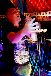 Due to severe technical problems which couldn’t be solved so easily as the given equipment was not that good and finding a replacement at this time of day was quite impossible, the first concert started more than an hour later. So in the meantime we started to joke that the SynthWest event might end up as an acoustic evening. But finally LOW TIDE THEORY could open the evening. Their music was very much 80’s with a nice bass line, albeit the vocal quality of the singer was a bit weak. Furthermore I had the impression that the sound guy was not really sure what he was doing and so the instrument dominated partly the vocals. There was not really much interaction with the audience. Probably the guys were too nervous after waiting so long until they were able to perform.