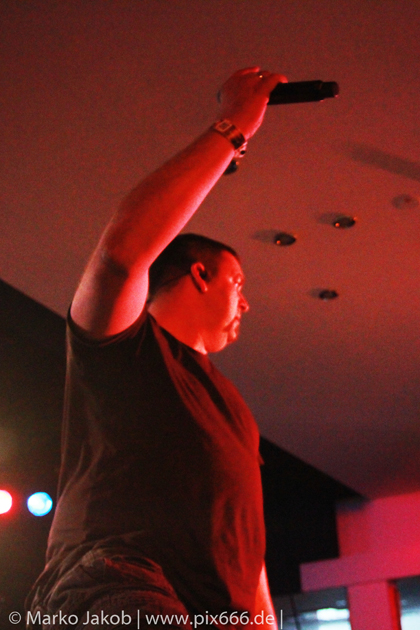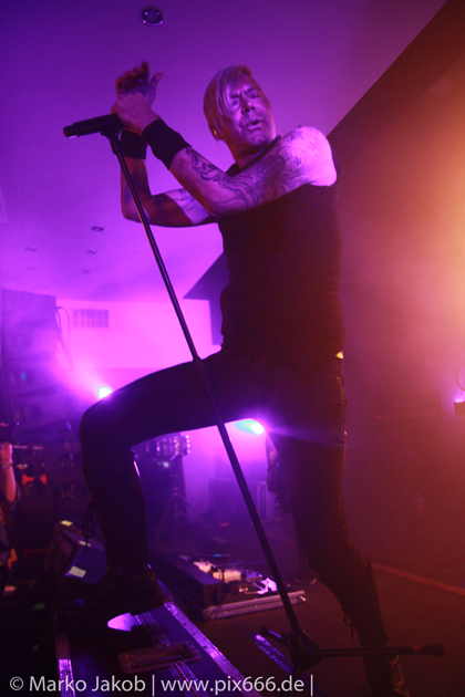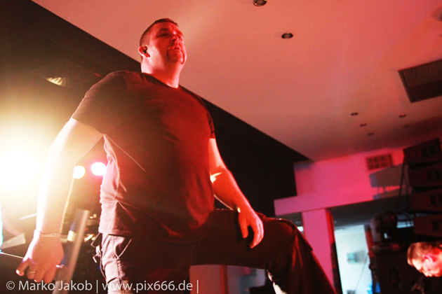 Next was the EBM/ Industrial project NOISUF-X. Their last album, ‘Banzai’, is already almost a year old. Last year, NOISUF-X played the Wave Gotik Treffen, this year they are still touring with upcoming concerts in Sweden and Finland. The “Salle de Fete” had plenty of onlookers as NOISUF-X entered the stage. Beautiful lighting effects and a clear sound filled the club in this early evening spot. Fans of this band had long been standing in the best places in the front. A great concert ensued, and of course the well-known hits from the bands 10-year history were not missing in the set. ‘Hit me hard’, ‘Jezebel’, ‘The Typical Fuck You song’ made the hall boiling. // https://www.facebook.com/NOISUFXofficial // Setlist: 01. Big Bang / 02. Warning / 03. Count To 7 / 04. Banzai / 05. The Typical Fuck You Song / 06. Son Of A Bitch / 07. Satisfaction / 08. Jezebel / 09. I Am Watching You / 10. Robots, Destroy Him! / 11. Hit Me Hard / 12. Klick Klick / 13. I Kick Your Fucking Teeth In / 14. Shut Up / 15. Fuck It