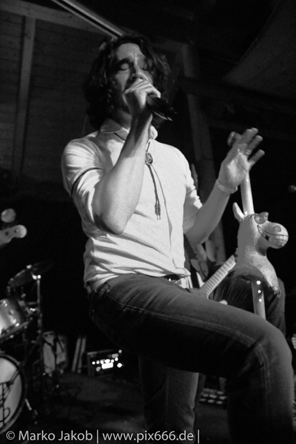 Circus music with German texts - welcome to APRON from Munich. Their website describes their music somewhere between “ERSTE ALLGEMEINE VERUNSICHERUNG and SYSTEM OF A DOWN”. They are known for their energetic live shows and brought their current album, ‘Auf dem Ponyhof’, to the Baltic Sea. APRON opened the festival at “La Rotonde”, a really nice and cosy club with a very special atmosphere. It was relatively dark and the audience was very close to the action as there was no barrier in front of the stage. The microphone stand by singer Till was striking and featured the pink head of a pony. This was a really entertaining and atmospheric concert in which the band communicated a lot with the audience. An unusual band with extraordinary music that set off the rest of the festival! // https://www.facebook.com/apRonofficial // Setlist: 01. Vorhang Auf & 02. GFLT / 03. Mensch Aus Glas / 04. In Cerebrum Cacatur / 05. Wenn Der Damm Bricht / 06. Leinen Los / 07. Das Krokodil / 08. Mr. Punch / 09. Zirkus / 10. Taktstock / 11. Hangman