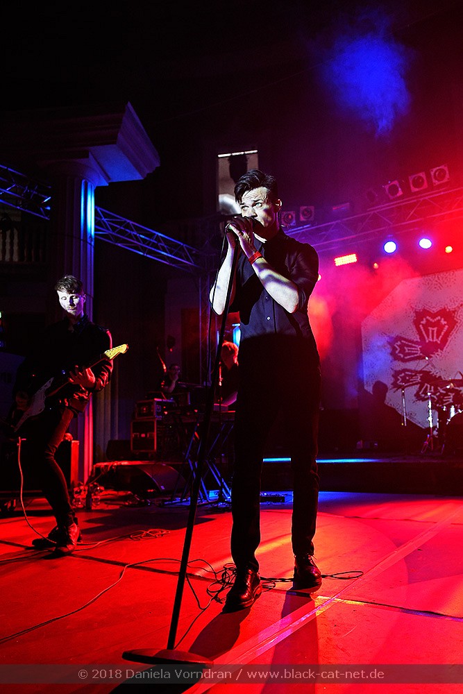 THEN COMES SILENCE is a band from Stockholm in Sweden and were founded in 2012. In 2016, they signed a contract with the well-known German label Nuclear Blast. This is the first time that Westbad has been used as Wave Gotik Treffen venue. Built as a bathing site some 90 years ago, it is now the venue for concerts and the shape of the hall gave all spectators a good view to the stage. The concert started with the song ‘Magnetic’ from the current album ‘Blood’. Their music is an interesting and varied mix of Gothic Rock and Post Punk. More and more fans poured into the location during the concert, which was now almost completely full. An absolutely great atmosphere with the stage shrouded in white light and a lot of fog. One of the highlights was the song ‘Strangers’, which also featured a video clip. At the end of the concert there was a lot of warm applause for the Swedes. // http://thencomessilence.com / https://www.facebook.com/thencomessilence // Setlist: 01. Magnetic / 02. Flashing Pangs Of Love / 03. Warm Like Blood / 04. Good Friday / 05. My Bones / 06. Death Rides / 07. The Rest Will Follow / 08. Spinning Faster / 09. Animals / 10. Cannot Hide / 11. She Loves The Night / 12. The Dead Cry For No One / 13. Strange Kicks / 14. Strangers / 15. Mercury / 16. She Lies In Wait / 17. Sweet Curls