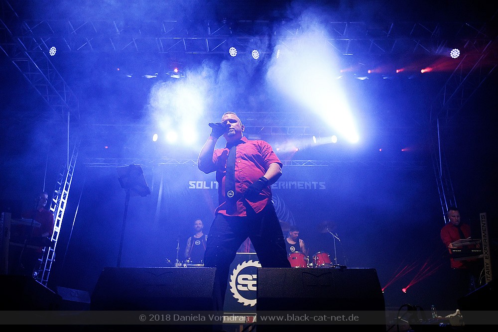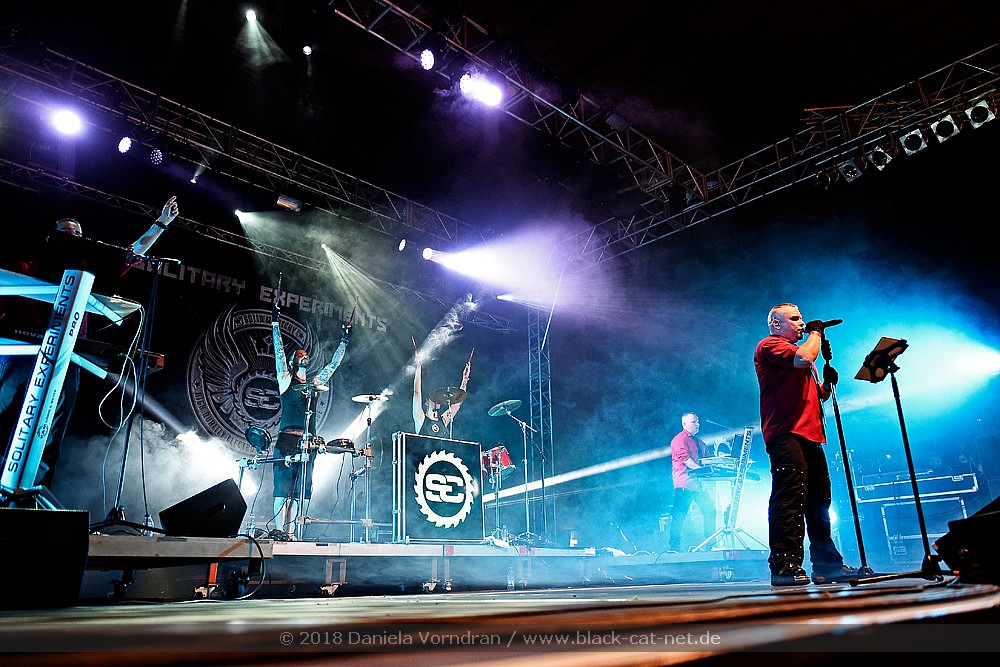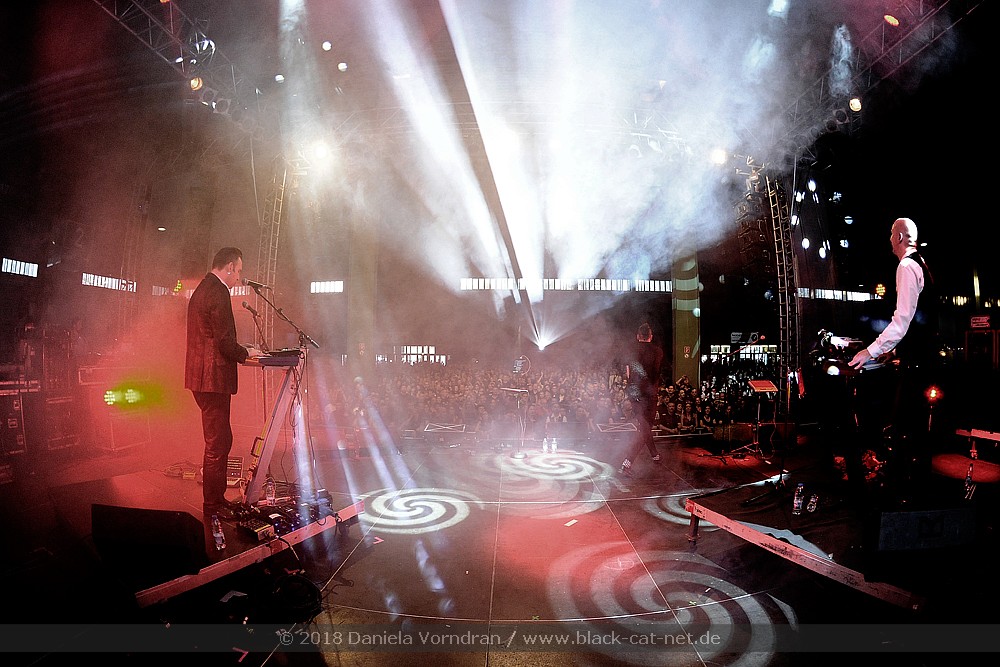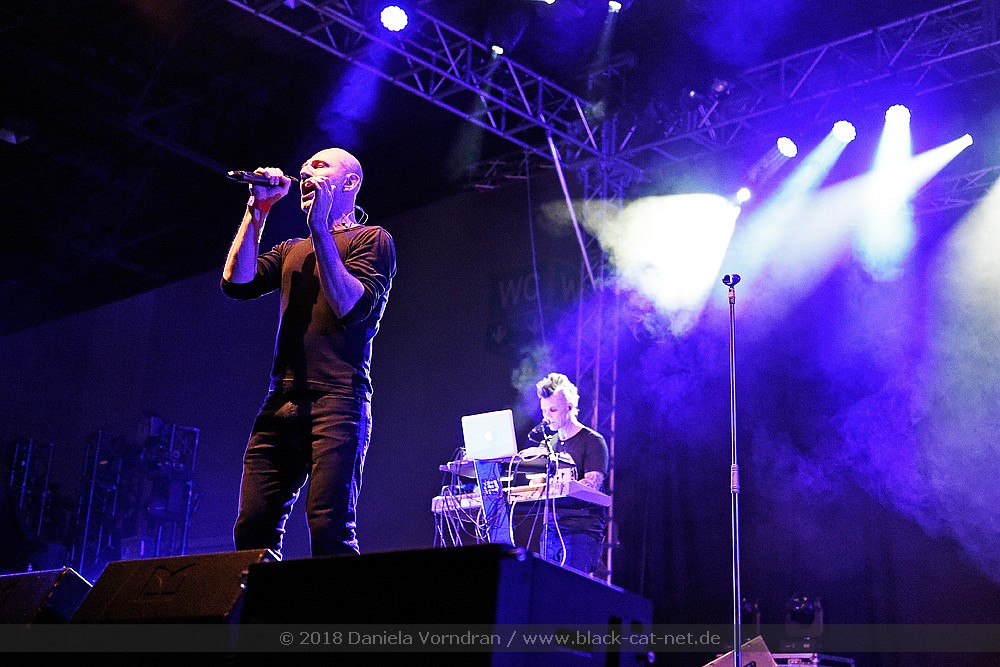 The next act from Scandinavia was probably not known to many attendees. But maybe CODE64 rings a bell? XENTURION PRIME was born from the ashes of CODE64. Bjørn Marius Borg and Hasse Mattsson formed the band in 2013 to continue their mission to create epic electronic music. In 2017 they were joined by Cathrine Räisänen Andersen. Debut album, ‘Mecha Rising’, was released in 2014, while the follow-up, ‘Humanity Plus’, is available now. Musically, the band combines Industrial and Synth Pop with powerful club music and epic cinematic soundscapes. The sound is futuristic and forward thinking but has a strong connection to the past. I am sure, also the WGT audience was convinced by the different Synth Pop sound. // http://www.xenturionprime.com / https://www.facebook.com/xenturionprime