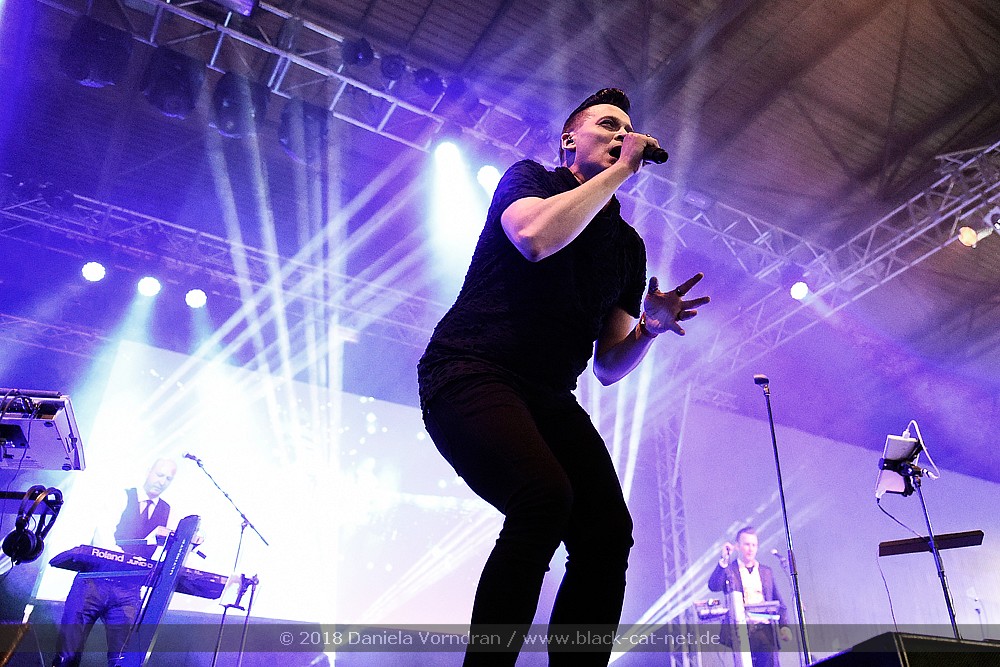 The final Synth Pop performance came from DE/VISION, who started the set with new songs. The band is not only celebrating its 30th anniversary this year, they are also presenting their new album ‘City Beats’ on June 22. Their show at WGT presented a few songs out of this album. Good to introduce new music, but maybe not the best choice to start a festival set with new songs. It took a while until the audience was into the show. When the older classics like ‘Your Hands on My Skin’ or ‘I Regret’ followed later, the audience slowly thawed out and joined in. Along to the old gems, people were singing and dancing along. Overall, I had the feel that the stage of Agra was maybe too big for the show of DE/VISION. I rather prefer seeing them in the intimate setting of a smaller club. // http://www.devision-music.de / https://www.facebook.com/DEVISION-24741337633 // Setlist: 01. Intro / In the Still of the Night / 02. They Won’t Silence Us / 03. Rage / 04. Essence (Extended Version) / 05. Time to Be Alive / 06. Synchronize (Extended Short) / 07. The Brightest Star / 08. Who Am I / 09. I’m Not Dreaming of You / 10. Where’s The Light? / 11. Your Hands on My Skin / 12. I Regret / 13. Flavour of the Week / Encores: 14. mAndroids / 15. Try To Forget / 16. Last Goodbye