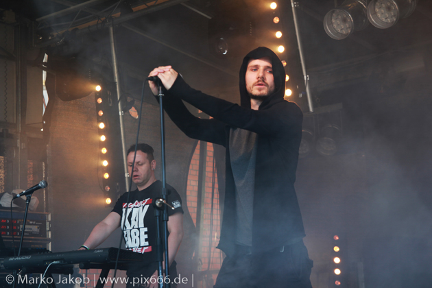 The Dark Electronic project REICHSFEIND was founded in 2011. The debut album of the band is called ‘Living In Space’. The next band on the beautiful open air area in southwest Leipzig was REICHSFEIND from Frankfurt. They presented their beautiful Dance-Electro to a receptive audience who accepted the invitation to dance. Great, spherical Electro sound, including many songs with an earworm guarantee. There was room for a slightly quieter song in the set ‘Soulpaint’. The cool, casual style and stage presence of singer Timo was also impressive. // https://www.facebook.com/Reichsfeind // Setlist: 01. Welcome To The World / 02. Soulpaint / 03. Mute / 04. Mountains / 05. Chasm Walk / 06. Fill The Void / 07. Stalker / 08. Dervish / 09. Detox