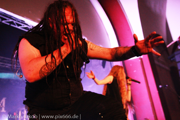 AEVERIUM is an alternative metal band from Germany. It was founded in 2013 and had its first live performance a year later. Meanwhile, they have already conquered the very big stages and played among others at the M’era Luna Festival and Wacken Open Air. Now the Felsenkeller was almost full when this very popular band took over the stage. AEVERIUM played a great mix of songs from their previous two albums, ‘Break Out’ and ‘Time’. Of course, the ballad ‘Home’, in which singer Maurelle’s beautiful voice comes into its own, was not missing. All hands were in the air during this song, and it looked pretty damn good. During ‘Brave New World’, there was even a lot of simultaneous head-banging! After a series of faster songs, singer Marcel had to rest for a few seconds. He told us he was out of breath due to his size and this self- depreciation came across as very likable. The song ‘What Are You Waiting For’ was sung together with the audience as a choir. It was really a great atmosphere and it was clear the band did not want to leave the stage. The band thanked the fans very much and said that Leipzig is one of their absolute favourite cities. // http://www.aeverium.com / https://www.facebook.com/aeverium // Setlist: 01. Do You Remember / 02. Distrust / 03. Hunted / 04. The Otherside / 05. Home / 06. Brave New World / 07. Veil Of Shadows / 08. What Are You Waiting For / 09. Break Out / 10. Heavens Burning