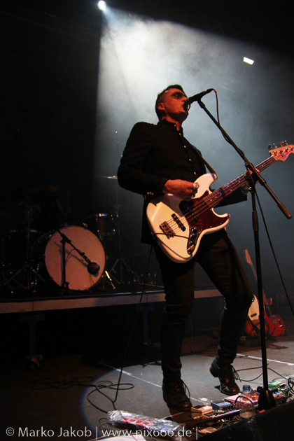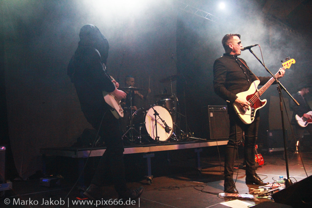 Next, from Icelandic sounds to Post Punk, a big jump. At 3.15pm, the Post Punk / Darkwave band A PROJECTION from Stockholm was entering the stage at the Volkspalast’s Kuppelhalle. I saw the band for the first time at last year’s NCN and they already convinced me totally. A PROJECTION is a very young quintet from Sweden with unbelievable likes for Post-Punk and New Wave and does not sound Scandinavian at all but rather very British. A PROJECTION was launched in 2013. Dark, yet aggressive, impulsive and danceable is their sound, with a lot of emphasis placed on hook lines and refrains. It is cool, unapproachable, lifted, melancholic, depressive - or even depressed… there are a lot of tags you could give their sound. Post Punk at its finest, a very rhythmic and melodic sounds with an expressive singer reminding me from time to time of Ian Curtis or Kristoffer Grip, the former singer of AGENT SIDE GRINDER. It was a very good show with a great video visuals. You really should listen to this band! Recommended! Really! Fans of INTERPOL, CHAMELEONS or JOY DIVISION/NEW ORDER will surely love it! // http://aprojection.com / https://www.facebook.com/aprojectionband