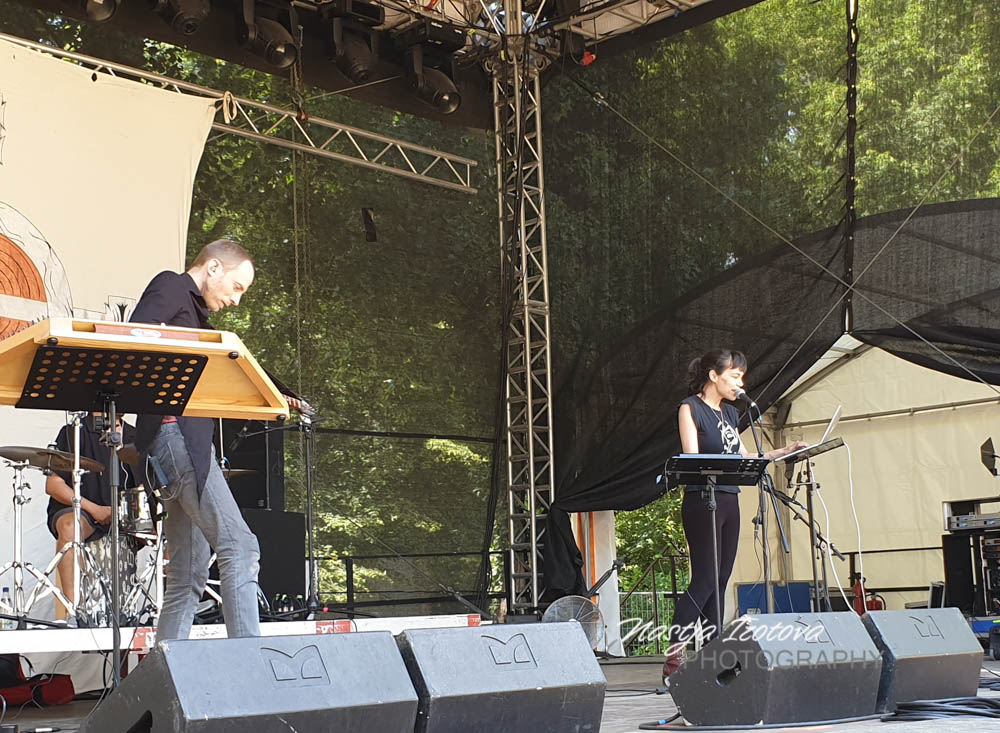 I decided to spend the day not travelling around, but starting with an early visit at Heidnisches Dorf before switching over to Agra stage for the first time this year. Heidnisches Dorf was not that filled yet around 2pm when I came, so it was a really enjoyable start into the third day. ARHAI are Jovana Backovic born in Serbia and Adrian Lever, both living in London. The word “Arhai” comes from the ancient Greek language and means “principle”, “ancient” or “beginning”. The project was founded in 1999. Jovana is singer and composer and Adrian plays a variety of special instruments like tambura or medieval dulcimer. ARHAI spread their fairy-like sound all over Heidnisches Dorf. The music of ARHAI shows elements of medieval Balkan and Gaelic roots, Electronica and Serbian folk music.
