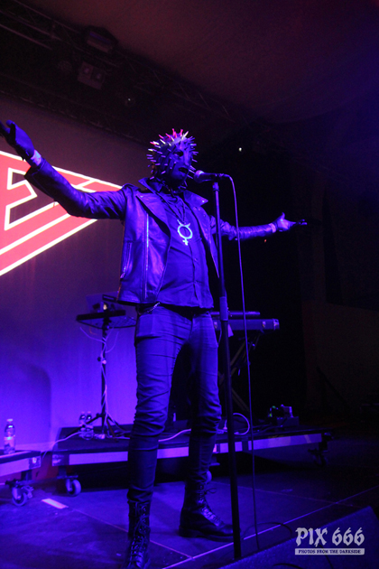 During the change-over between the bands the legendary THE CURE album ‘Disintegration’ was played over the speakers in the Westbad. A huge red PRIEST lettering was attached to the stage as a backdrop. Swedish Synth Pop band PRIEST have already been guests on tour with AESTHETIC PERFECTION in Germany this year. They also played at the E-Tropolis Festival and Out Of Line Weekender. At the beginning of this year, the band’s current EP, ‘Obey’, was released. The mood in the crowd for the Swedish Electro beats was great, especially in the front rows. “We are here for the first time and happy about it - thank you for being here, you are looking great!” is how the Swedes greeted their fans after the first song.