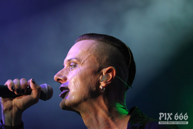 It felt a bit hard to switch into the LONDON AFTER MIDNIGHT mode after the incredibly amazing performance by LORD OF THE LOST, but nevertheless I was totally looking forward to this gig. The chances to see the legends of Goth and Industrial Rock live in the last years were quite rare, so I feel now very blessed to count in total three festival performances by LONDON AFTER MIDNIGHT to my own experiences list. The gig started with an epic intro, a combination of the majestic ‘Carmina Burana’ theme and ‘The Devil’s advocate’, followed by video clips announcing new releases “coming soon”. If you want to know more about it and other topics, check out the interview that we currently made for our magazine with Sean Brennan, the mastermind and singer of LONDON AFTER MIDNIGHT.