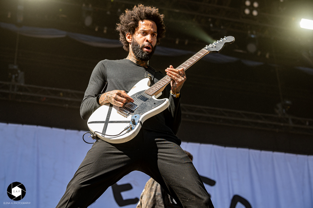 The band around frontman Jason Aalon Butler, founded in California in 2017, performed on the main stage of the Rocco Del Schlacko this year. With lyrics that address various topics such as racism, sexism and unequal treatment, the band knows how to pass on political statements in the form of music. Between metal, hardcore and punk, the guys play with different musical styles. On Saturday, the Saarland can familiarize itself with their music. With a little delay, the band came storming onto the stage like a whirlwind. Without any big words, the first song was directly intoned. And whoever was standing in the audience noticed immediately: this band had an insane energy. Both singer Jason and guitarist Stephen Harrison didn’t just stay in their places.