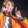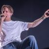 CASPER, whose real name is Benjamin Griffey, has already established himself as an “emo rapper" in the German rap scene for years. With his extraordinary, rough voice, the Bielefeld native has been thrilling his fans as a solo artist since 2008. His latest album ‘Alles war schön und nichts tat weh’ was released this year in February and gives some personal insights into the rapper’s life. Among others, Lena Meyer-Landrut, PROVINZ as well as KUMMER had guest appearances on this album. And on Saturday, CASPER will play as headliner together with his band on the Sauwasen stage of the Rocco Del Schlacko. At 11pm, the curtain that covered the stage was pushed aside, revealing a view of the stage. Between a sea of flowers, the band stood with their instruments and CASPER in the middle. The concert opened with ‘Alles war schön und nichts tat weh’. Immediately, the people in the crowd started singing along with the rapper, and they felt every note of the music. CASPER knows how to set the mood and accordingly started the next songs full of energy.