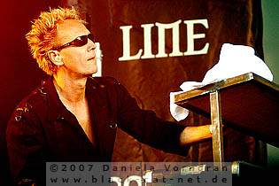 Dean Piavani and John Whybrew started the festival day on Sunday by means of moderate industrial sounds. Their music is very much of trance quality, not overwhelmingly danceable and yet very hypnotic. Smooth, changeable rhythm and strong defining beat stand for the greatest advantages of the projects, as the visual part of the gig seems to be skipped away (cause the Lonsdale t-shirt worn by the front man doesn't seem to fall under the category of the 'highly developed scenic performance' does it?).