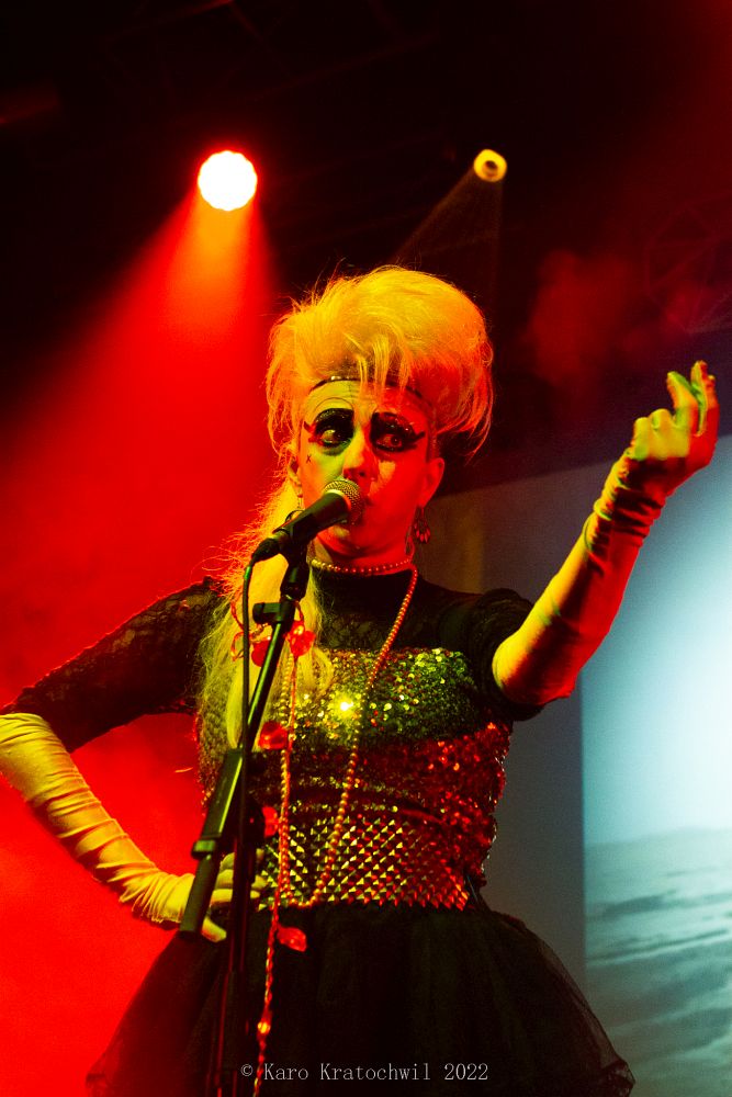 The concert night in the big hall was closed by British-German cold wave duo formed in 2010 by Swiss Larissa Iceglass from Germany and William Maybelline from Britain - LEBANON HANOVER. LEBANON HANOVER’s music has been compared to 1980s Gothic Rock / Post-Punk acts such as SIOUXSIE AND THE BANSHEES, THE CURE, and BAUHAUS. The band has a minimal, dark sound. Their songs have a signature light synth sound, deep bass, and melancholic lyrics. William Maybelline is responsible for the rhythm, synthesizer and bass, which add to the music like an ordered frame while contributing with more chaotic fragments.