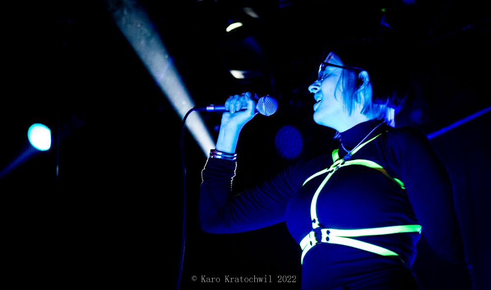RUE OBERKAMPF is a trio from Munich; was founded in 2016 by three DJs and since then offers a combination of electronics seasoned with the 80s vibe stylized on the synthesizer rawness. The concert of rue Oberkampf was one big energetic feast. The entire scenic setup evolved round the lit geometric figures so it was quite raw, but it corresponded very nicely with the futuristic look presented by Julia de Jouy, the sonic matter being the combination of cold electronics and powerful EBM and the entire performative mode. The vocalist presented a rather minimalistic way of frontwoman-ning and it contrasted with the dancy, sharp quality of the music.