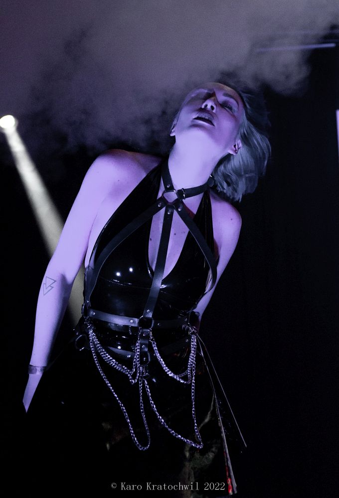 BEDLESS BONES, the Estonian project by Kadri Sammel, is a truly original and fascinating one. It was the second time I had a chance to see the band live (the first one was at Castle Party 2022) and I must admit the absolute power and magic Kadri creates on stage is exceptional. The hypnotizing and mesmerizing sonic matter is both powerful and fragile. Peculiar, extraordinary sound combinations deriving from both mystical and hardcore energetic plus a fantastic, a bit theatrical a bit shamanic performance make the concerts of Bedless Bones absolutely stunning and unique. The vocal line, powerful, yet delicate builds up a story one simply has to fall for. Melancholic or punching, it leads the listener through different routes and each one of them is fascinating and intriguing.