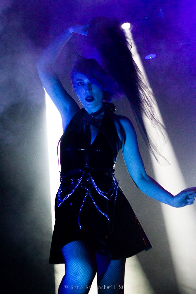 NNHMN is a Berlin based duo created by Lee and Laudarg, living and creatively in Berlin. And the music is a blend of various Synth, Electro, and Post-Techno sounds. They set up the project to develop their own fascination with Gothic aesthetics and the desire for immortality. Absolutely amazing music and emotional performance stood for one of the best concerts of the entire festival. The mix of dancy, mesmerizing sounds, and extraordinary vocal power by Lee, created a space for both energy boost and trancey nirvana. Slowly evolving sonic machinery, hypnotizing, magical voice, and magnetic quality of the entire performance was exquisite. The music of NNHMN is both energy and mystery balanced in a perfect way for one to want more. The setlist included some tracks previously released and some not yet out so it was quite a treat for the fans of the project. Beautiful, invigorating shot, bravo!
