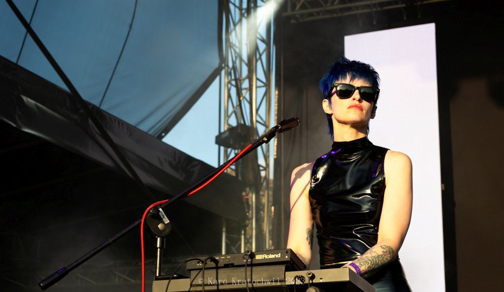 Sunday’s concerts at Castle Party 2023 were filled with remarkable performances, and one of the undeniable highlights was the eagerly awaited show by the Canadian project ACTORS. It had been quite some time since I last saw them live, and my anticipation was high. Thankfully, they lived up to all expectations and more. The band’s appearance may have changed a bit, with Shannon’s beautiful indigo hair catching the eye, but it was their incredible energy that truly stole the show on the castle stage. From the very moment they took the stage, their sparkling energy was palpable, setting the atmosphere alight with excitement. Their performance was a perfect fusion of beautiful vocals, seamless lights, and perfectly arranged guitars, creating a truly mesmerizing effect. The band’s stage presence was magnetic, drawing everyone into their world of music and emotions. Their chemistry on stage was evident, and the passion they poured into their performance was contagious, spreading throughout the crowd.