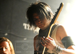 During the festival men have been treated with a lot of nice and fine dressed women, but as usual the women have much more to look at on stage. Women always seemed to be outnumbered on stage, except for bands like Client. Something was strange compared to the last time they played in the Netherlands, a shock for all men, a man had joined Sarah, Kate and Emily on stage. But let not this fact distract you from what else could be seen on stage while listening to some catchy tunes of the women in sexy leather airline dresses complete with wings and sexy stockings. Quite a few songs passed by from the latest album, released in March 2007; Heartland. But of course older songs like "Down to the Underground" kept the audience pleased and satisfied. No Darkness from these three lovely ladies but nice happy music with sexy lyrics nicely sung by the charismatic Sarah Blackwood while Kate Holmes (keys), Client M (bass) and Robert Görl (drums) set the right musical atmosphere for good last concert at Tivoli de Helling for this year's Summer Darkness.
